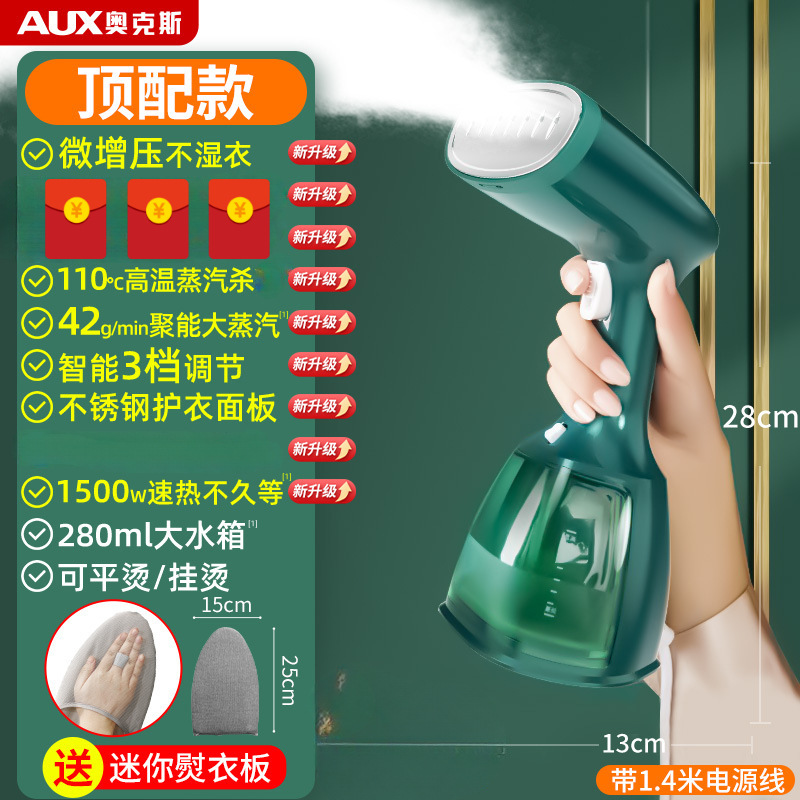 Топ-модель темно-зеленый + мини-гладильная доска [+ слегка под давлением неокруженная одежда + интеллектуальная 3-скоростная + защитная панель из нержавеющей стали + 280 мл большой воды