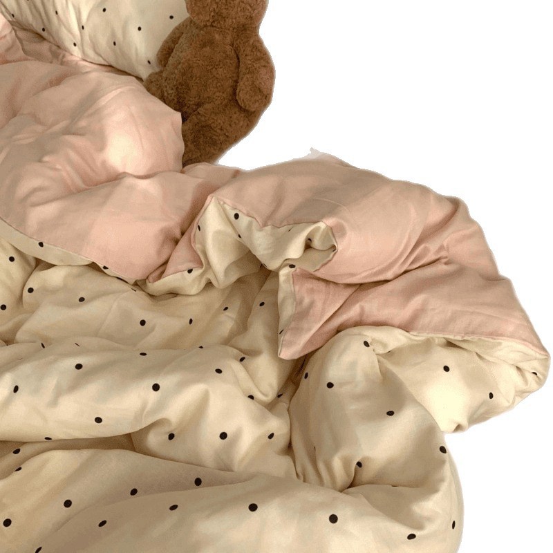 Кремовый комплект из четырех предметов из мытого хлопка в горошек, мягкие простыни и пододеяльник, приятные для кожи, комплект постельного белья из трех предметов для студенческого общежития.