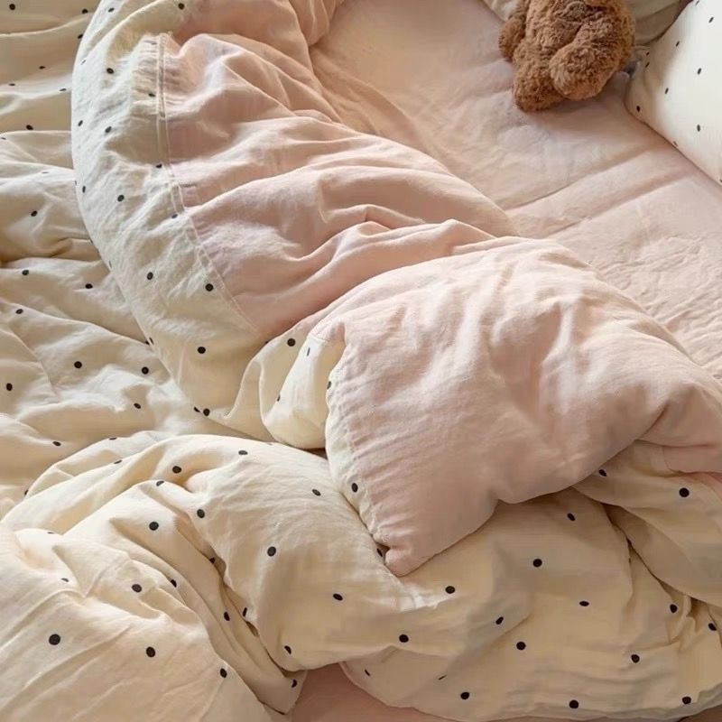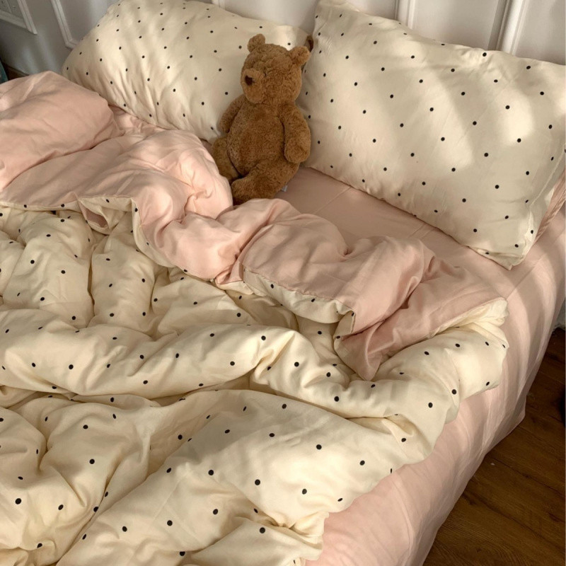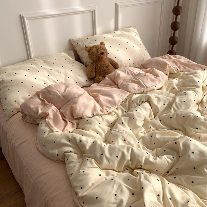 Главная страница > Кремовый комплект из четырех предметов из мытого хлопка в горошек, мягкие простыни и пододеяльник, приятные для кожи, комплект постельного белья из трех предметов для студенческого общежития.