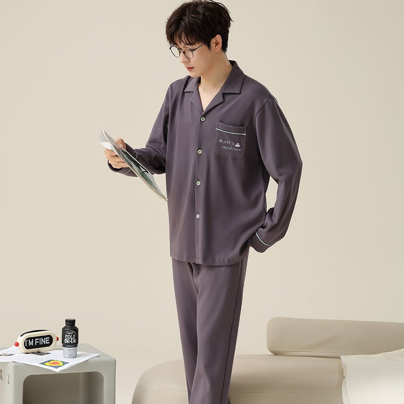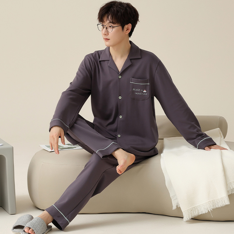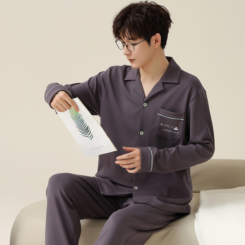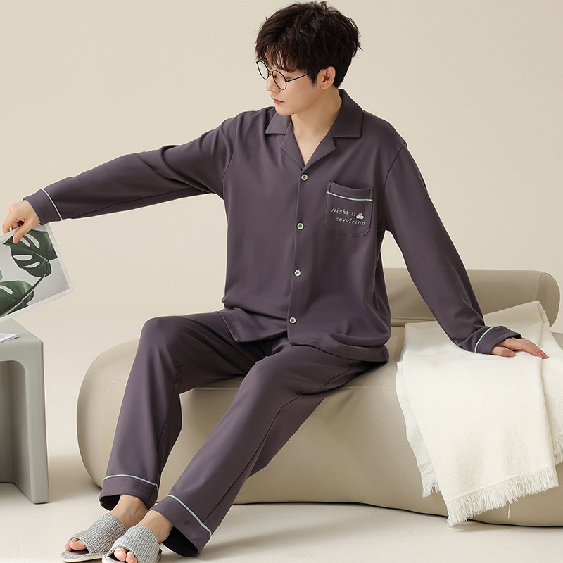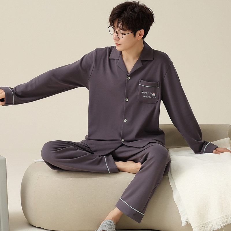 Главная страница > [Хлопок] пижама для мужчин весна и осень с длинными рукавами брюки высокого класса кардиган осенний и зимний мальчики домашняя одежда из двух частей