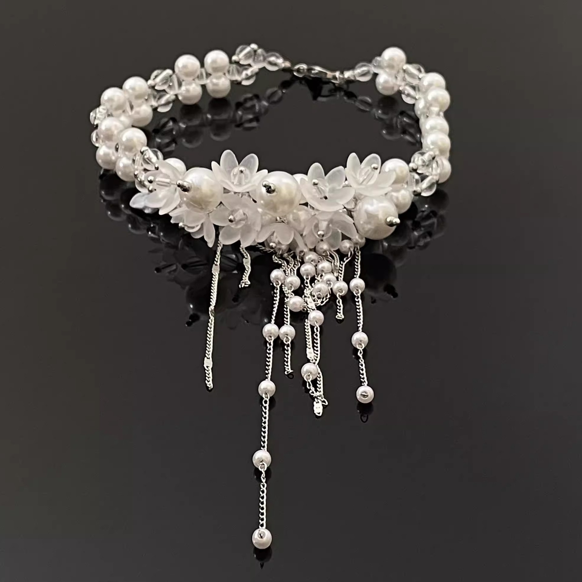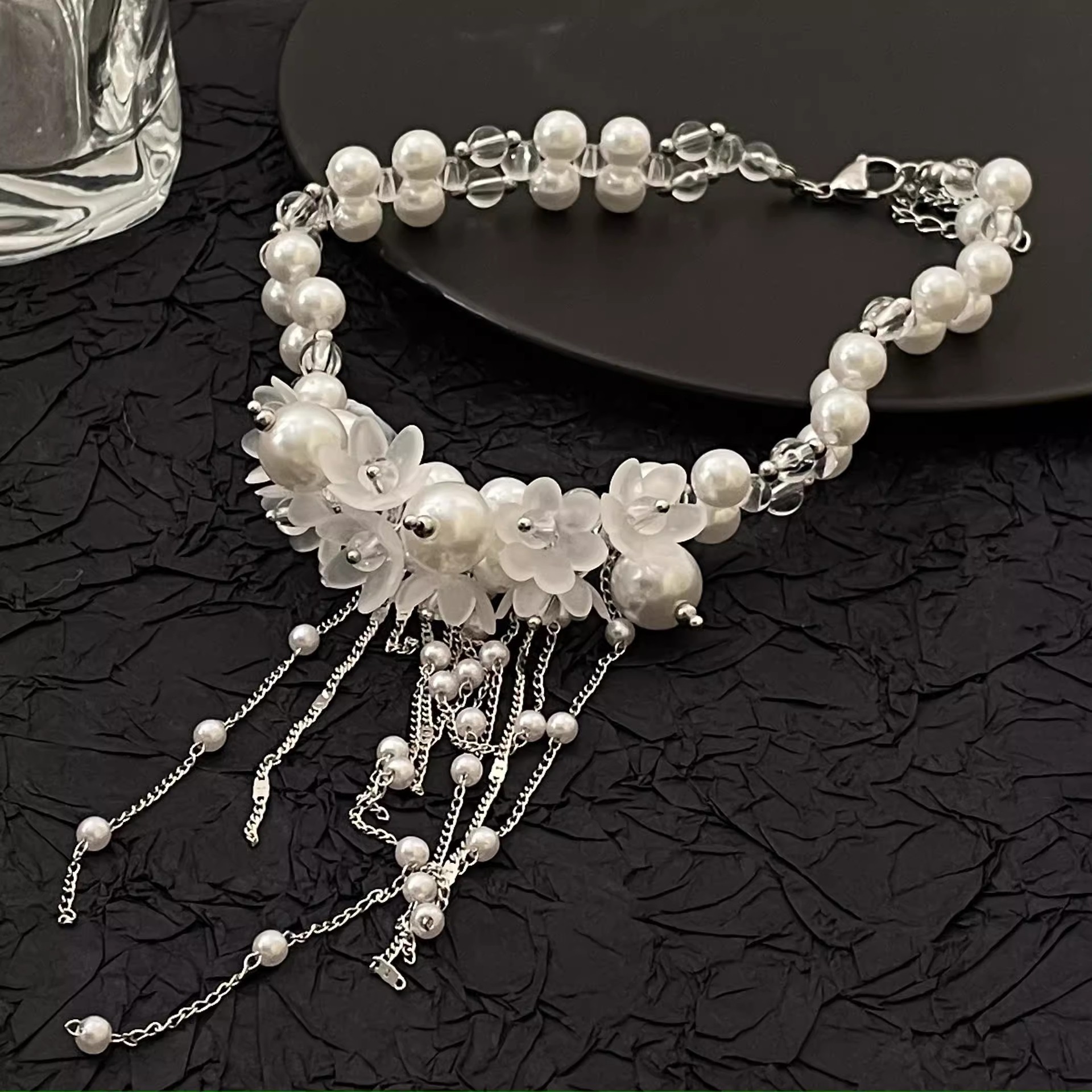 Главная страница > Ожерелье с кисточками из сладкого жемчуга и цветка камелии, женское нишевое высококачественное ожерелье с лесной феей, цепочка на ключицу