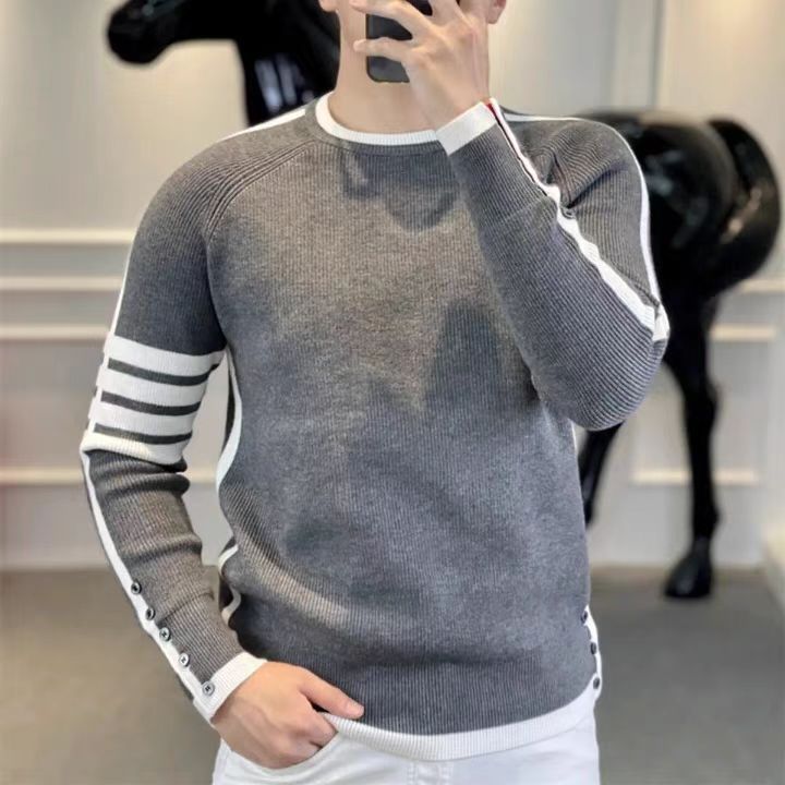 Главная страница > Зимний свитер с круглым вырезом мужской тренд ins вязаный свитер корейский свободный повседневный толстый цвет свитер дикий молодой