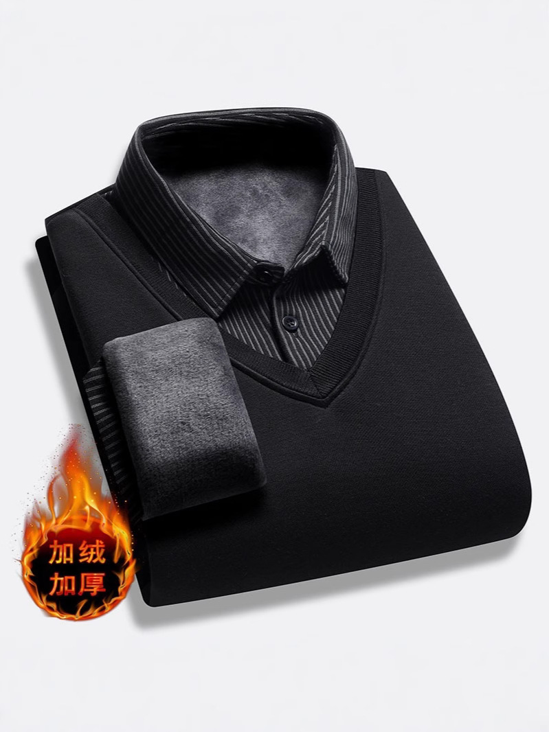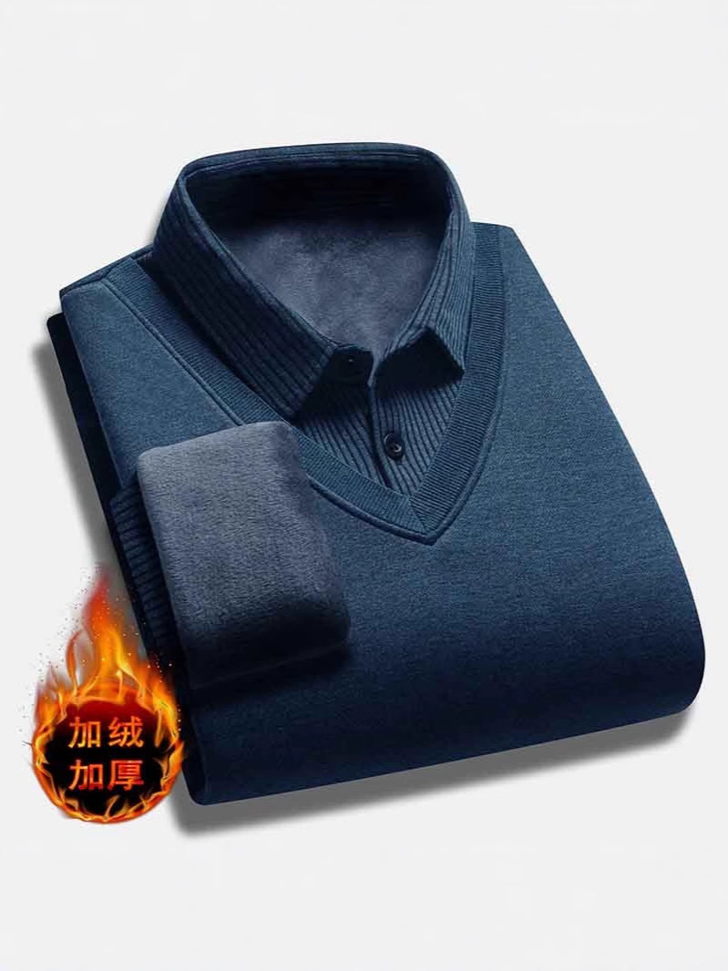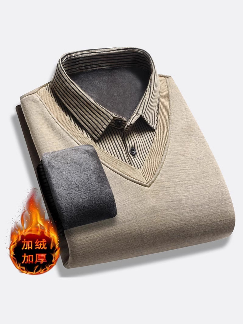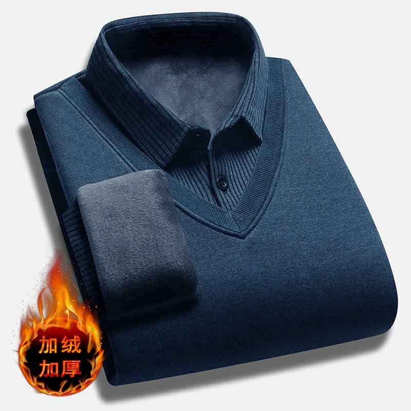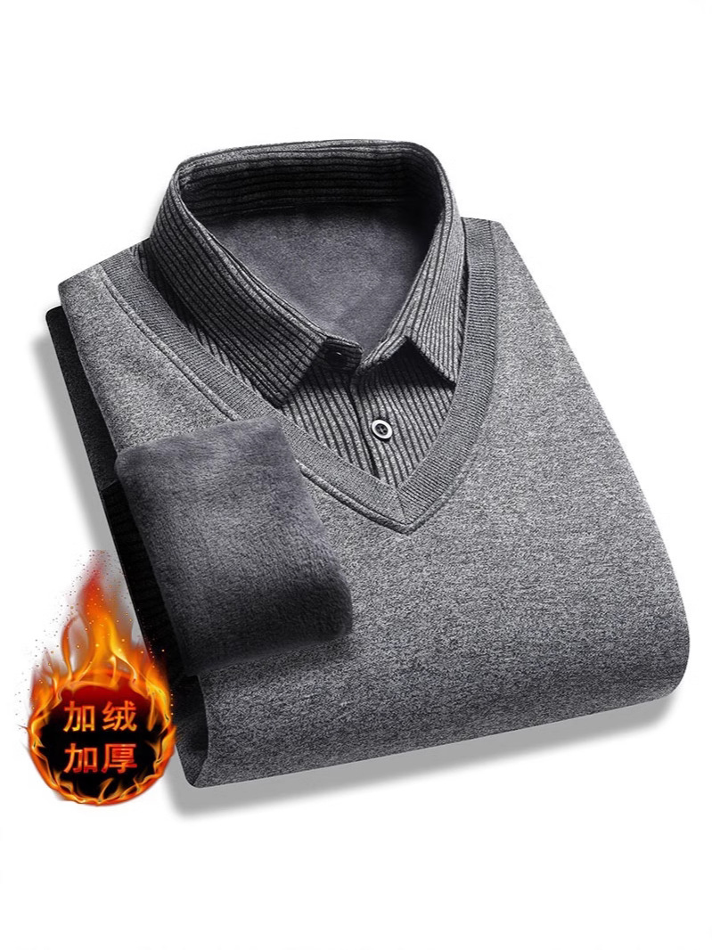 Главная страница > Мужские свитера поддельные две осенние и зимние новые корейские трикотажные свитера с флисом и воротником рубашки с бархатом и утолщением осенью и зимой