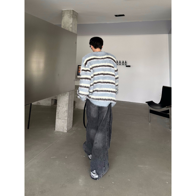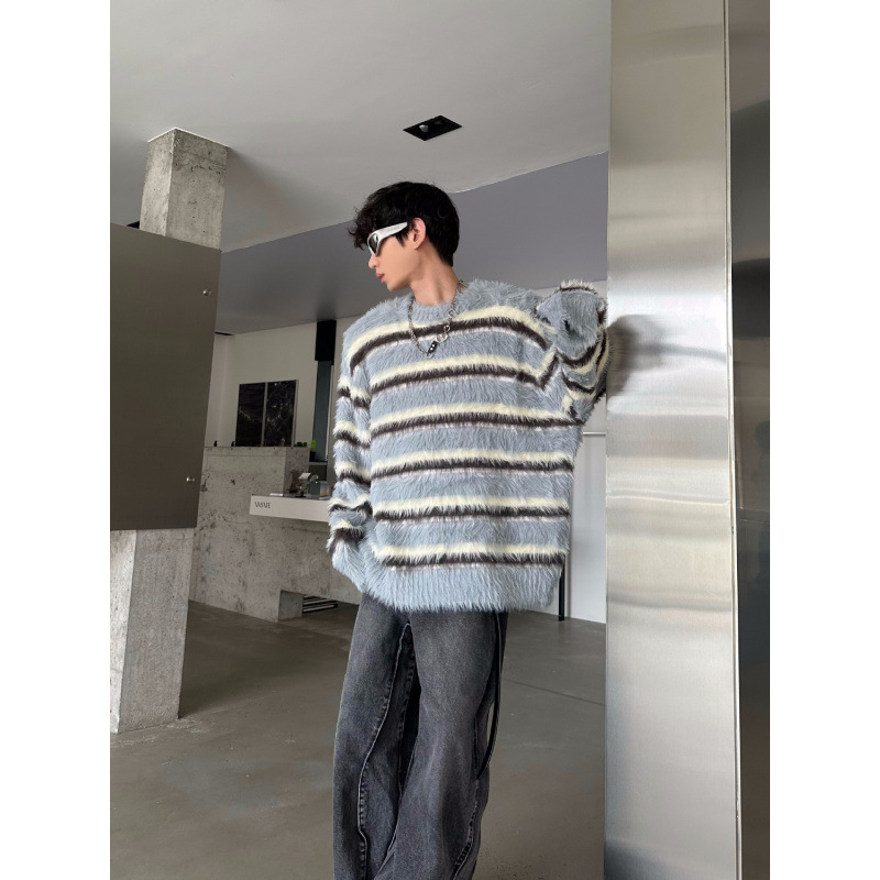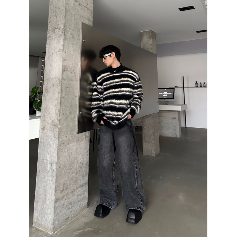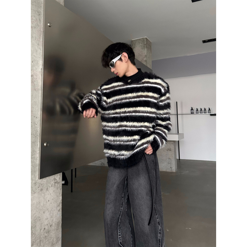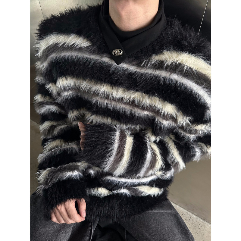 Главная страница > Производитель напрямую поставит нишу мохер черно-белый полосатый дизайн плюшевый свитер мужской простой премиум-трикотаж