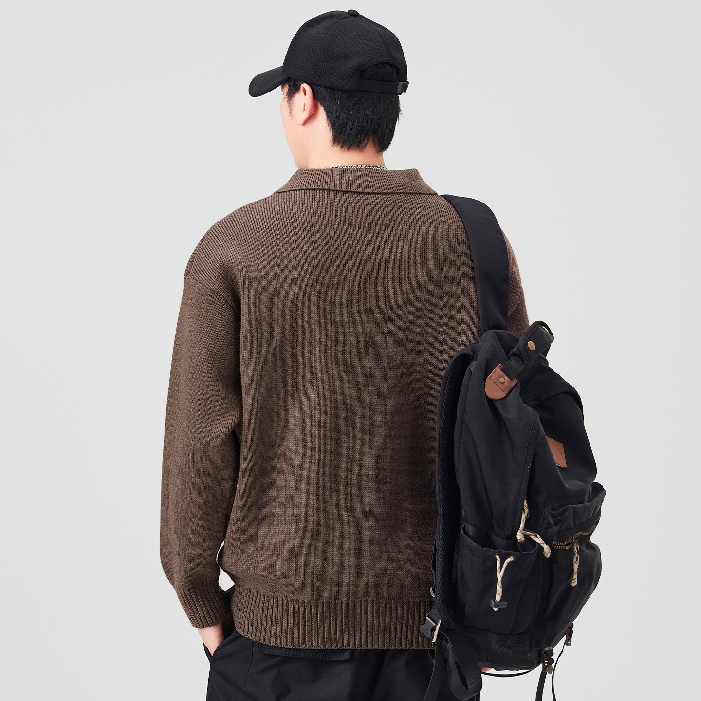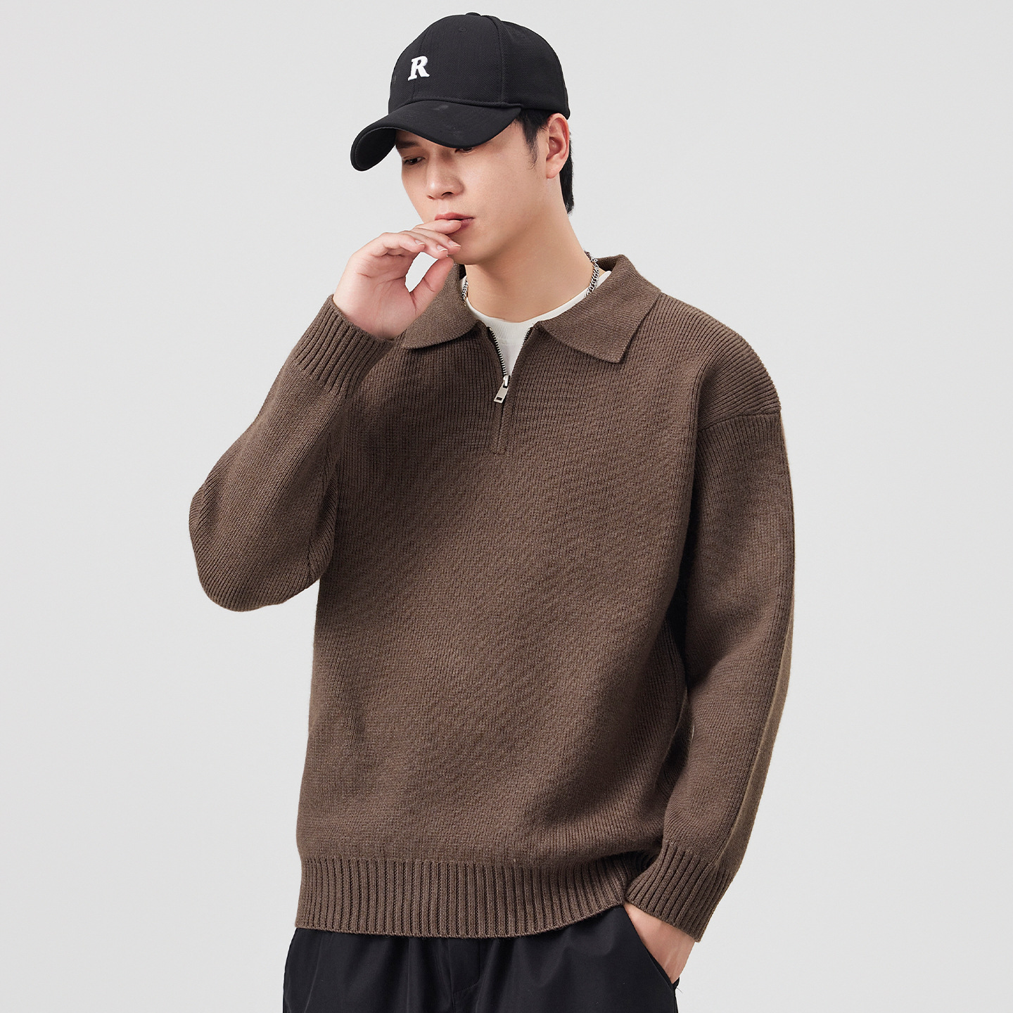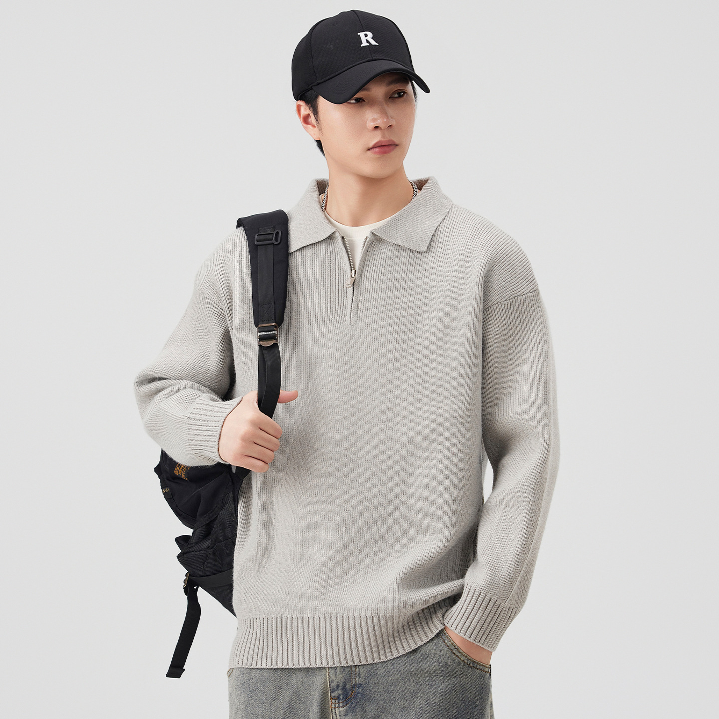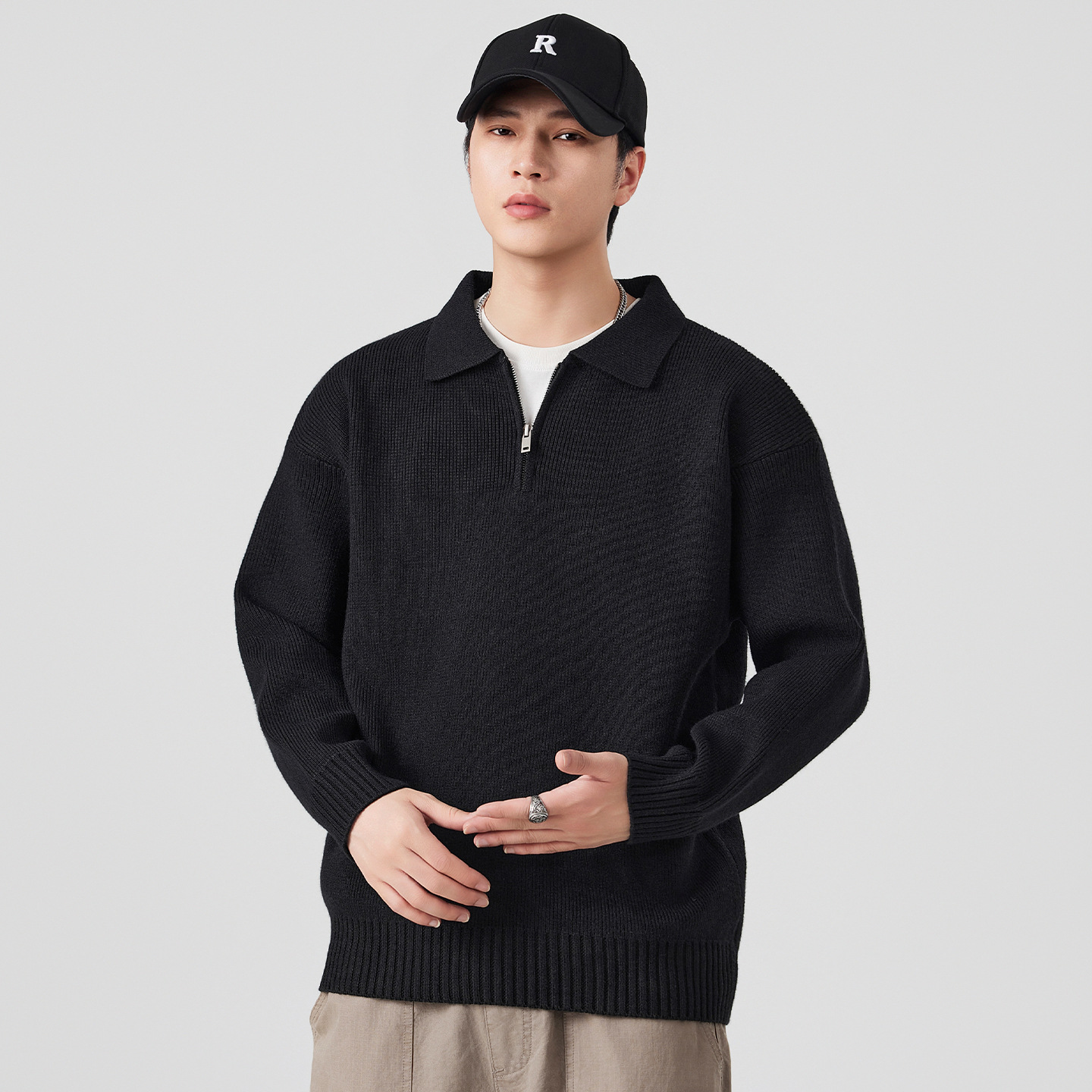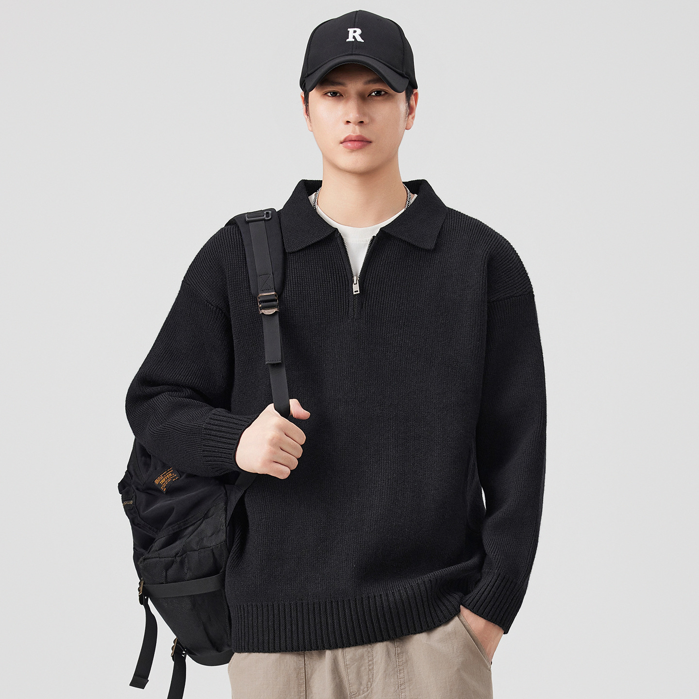 Главная страница > Черный мужской трикотаж с полузастежкой, осень-зима 2025, новый стиль, свободный и универсальный модный трикотаж с воротником-поло для мужчин