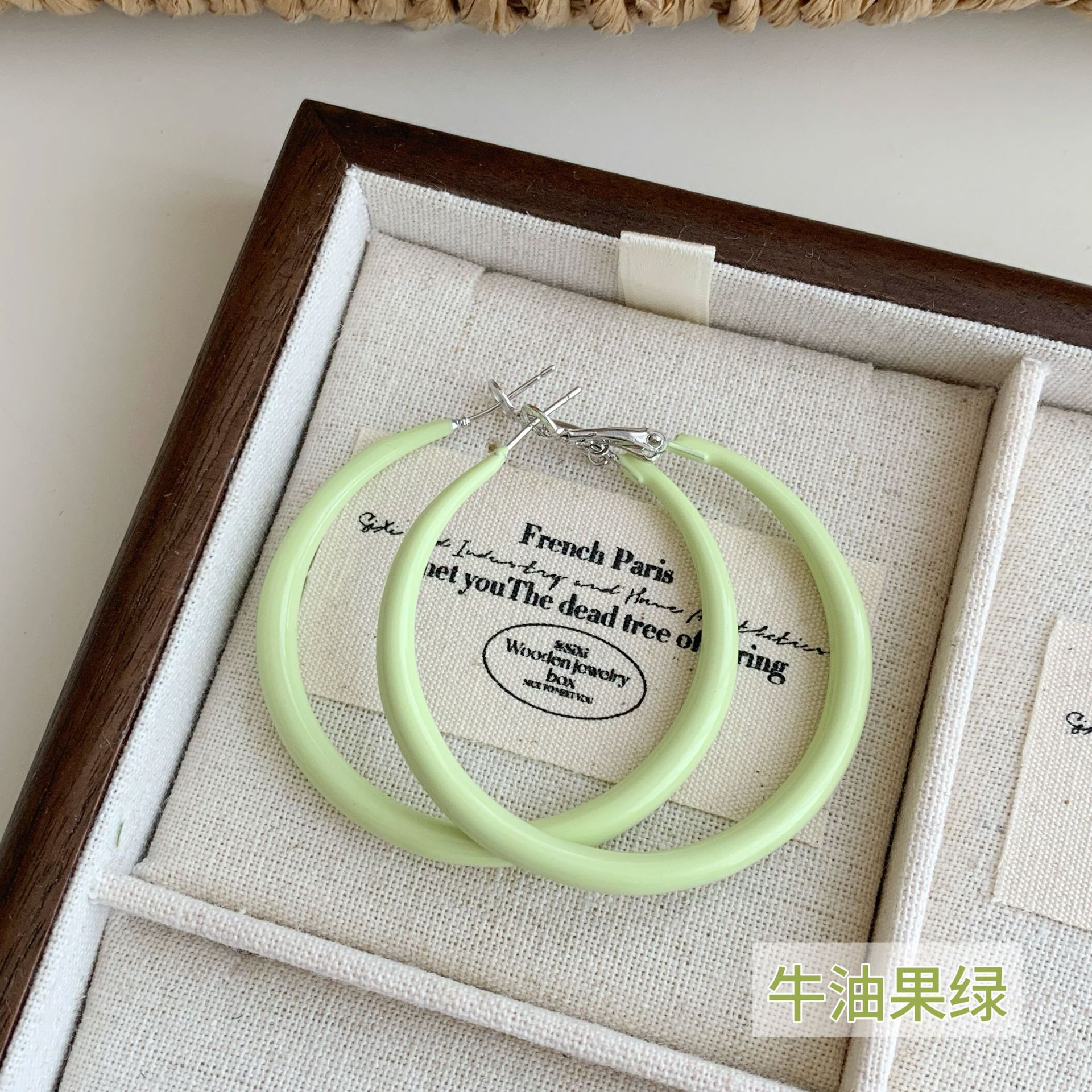 Весенние и летние кремовые большие кружки серьги дизайн чувство ниши женские серебряные иглы капает масло геометрические макароны премиум-класса дикие серьги