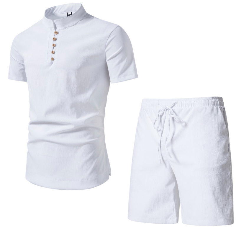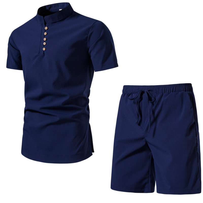 Костюм для внешней торговли Мужской 2023 Летний мужской китайский стиль плюс размер с коротким рукавом Ретро-рубашка Сплошной цвет Пляжные брюки Шорты костюм