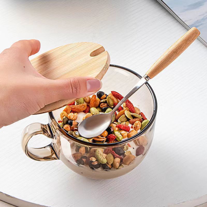 Главная страница > Чашка для овсянки, большая чашка для завтрака, стеклянная чашка для молока и овсянки, миска с крышкой и набором ложек, большая вместимость, оптом.