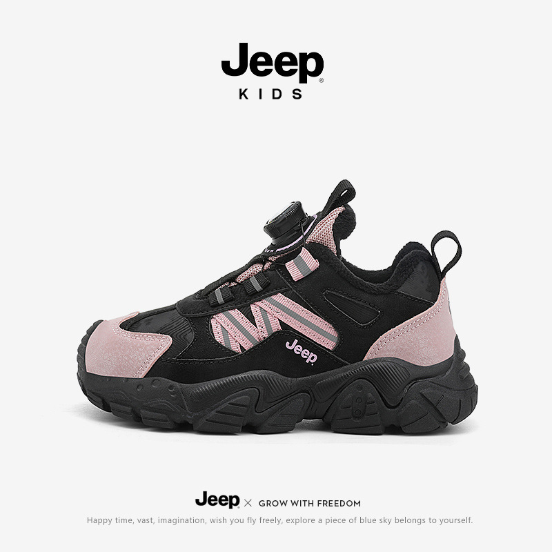 Детские зимние спортивные ботинки Jeep на флисовой подкладке, хлопковые, для мальчиков, новинка 2025 года, теплые кожаные ботинки для девочек