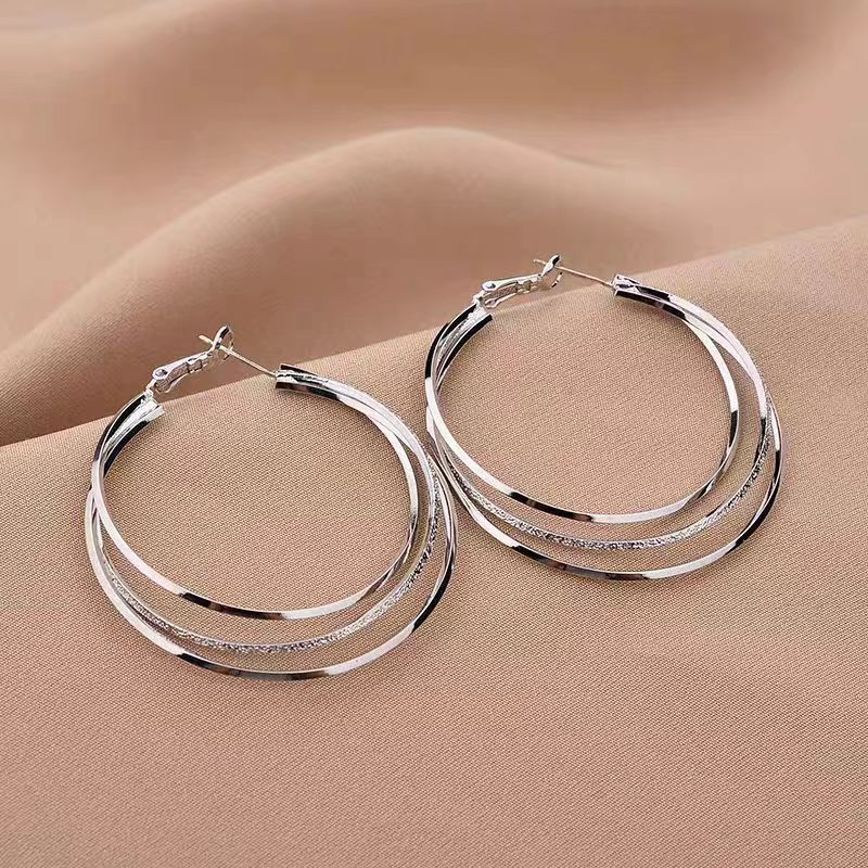 Главная страница > S925 Серебряный трехслойный преувеличенный атмосферный круг ушей женщины высокого уровня легкая роскошь нишевые дизайнерские серьги 2024 новая волна