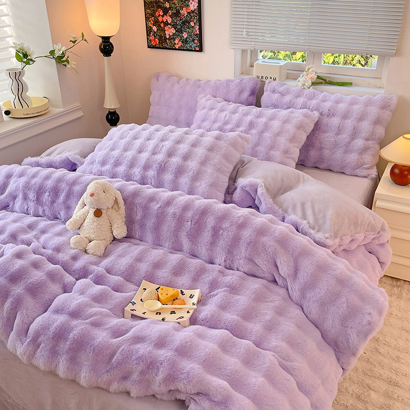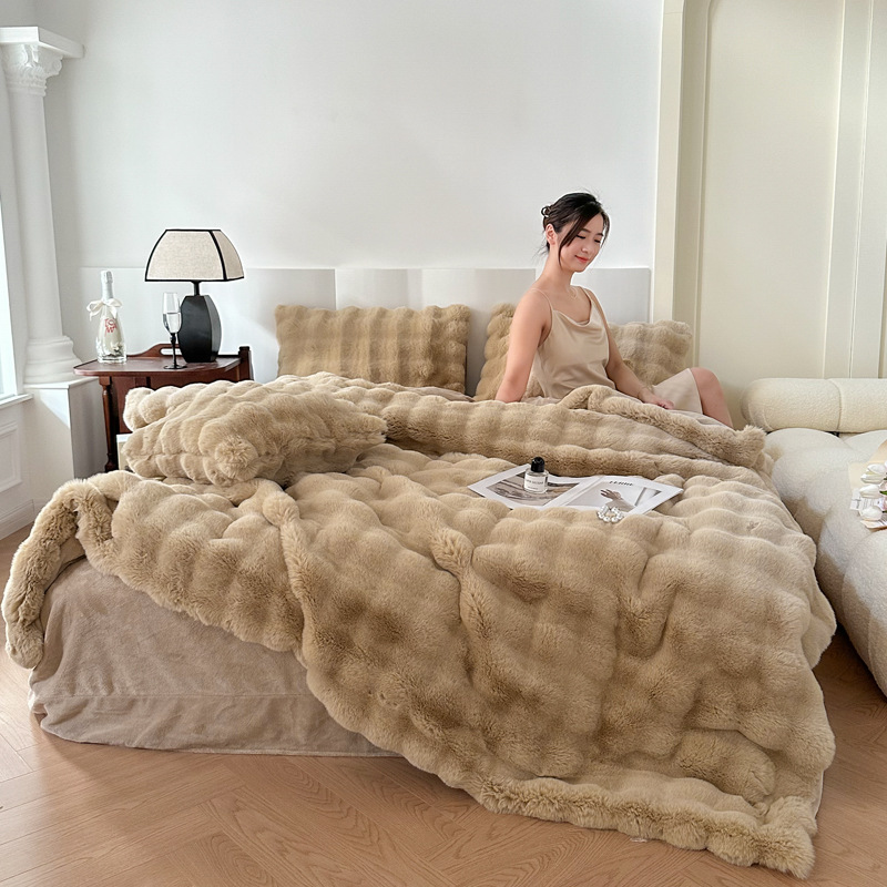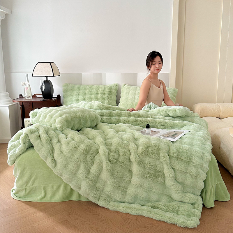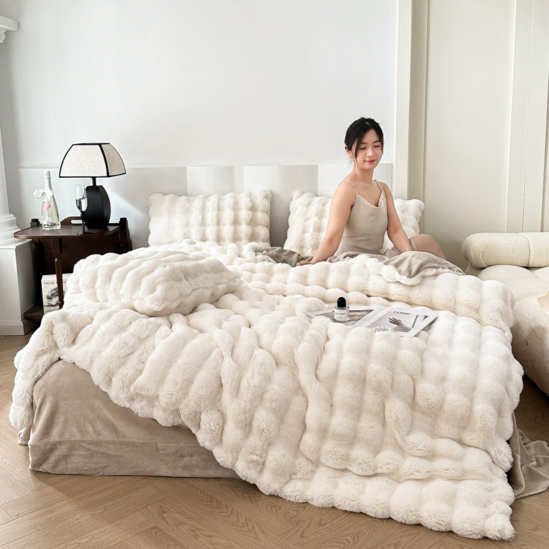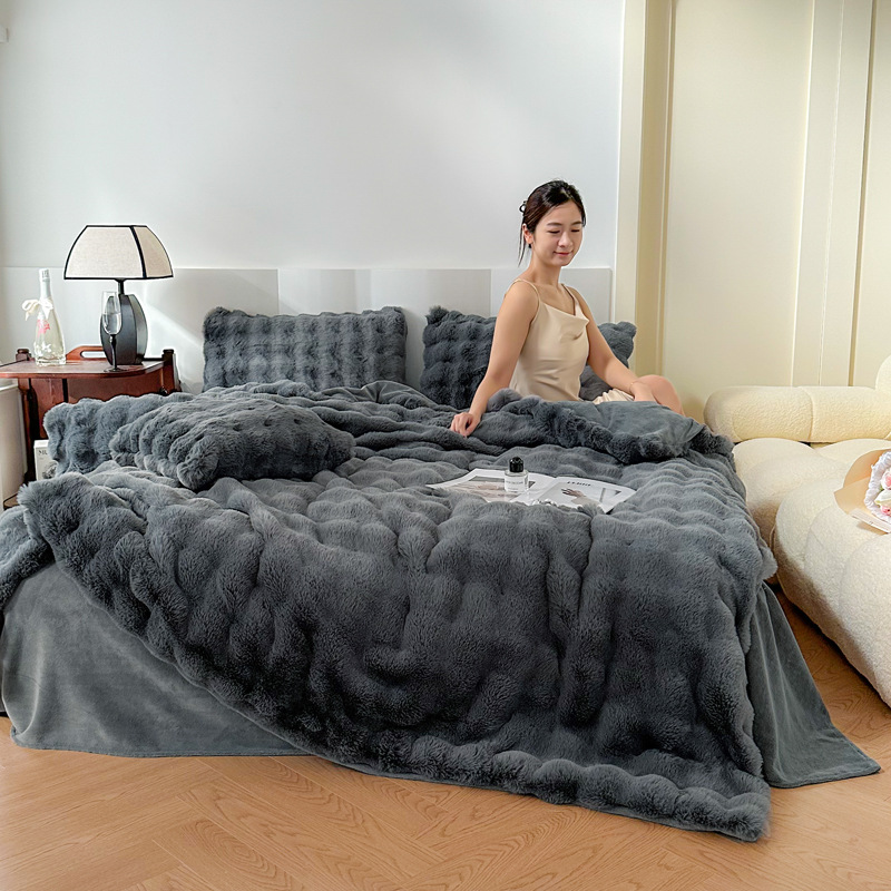 Главная страница > Комплект из четырех предметов из утолщенного меха рекс-кролика класса А: плюшевое коралловое флисовое одеяло, простыня из молочного вельвета, пододеяльник из меха кролика, комплект из трех предметов.