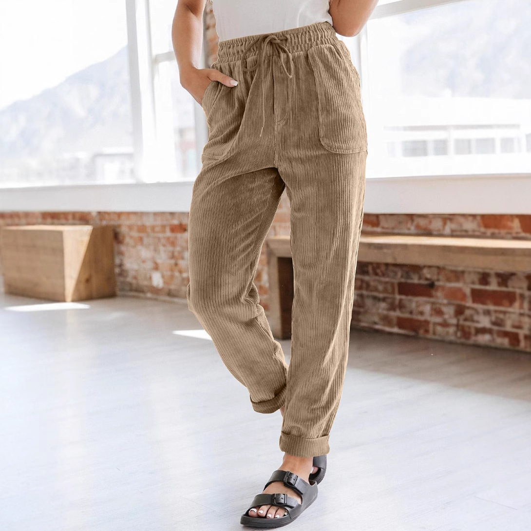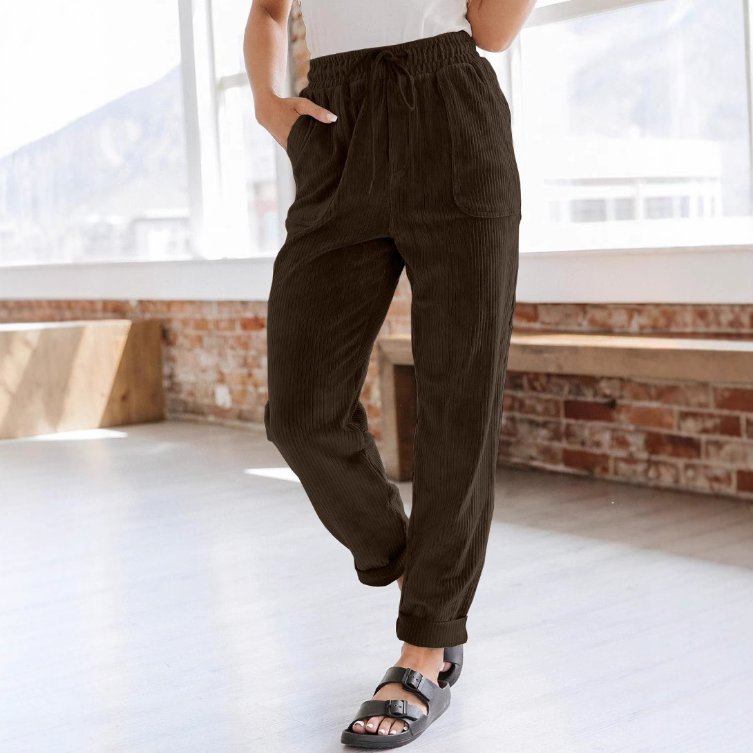 Главная страница > 2023 осенне-зимняя новая женская одежда Amazon желает европейских и американских повседневных брюк, модных однотонных вельветовых брюк с широкими штанинами, женских брюк