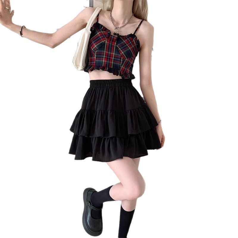 Главная страница > Юбка-кейк для женщин, высокая талия, юбка-трапеция, лето 2025, новые кюлоты, миниатюрная плиссированная юбка с рюшами