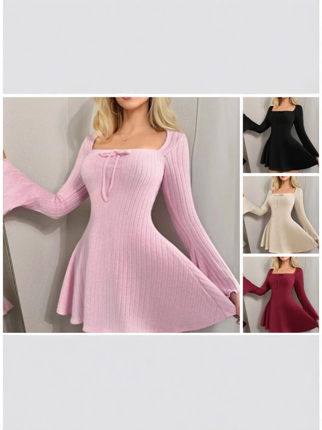 Главная страница > Новое платье осень-зима 2025 года в европейском и американском стиле, модное, облегающее, с квадратным вырезом, приталенное, А-силуэт, с длинным рукавом, в рубчик