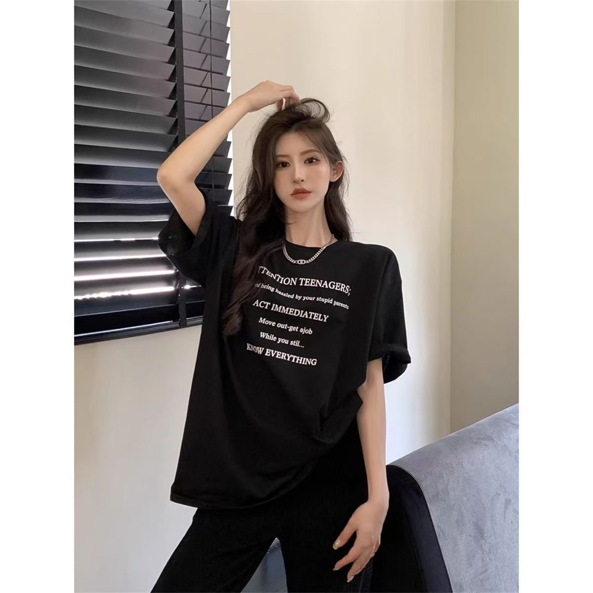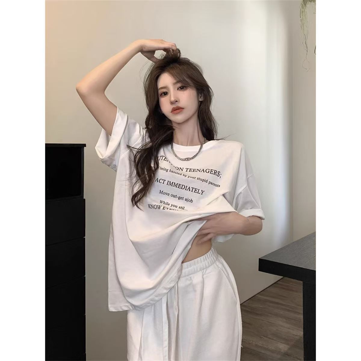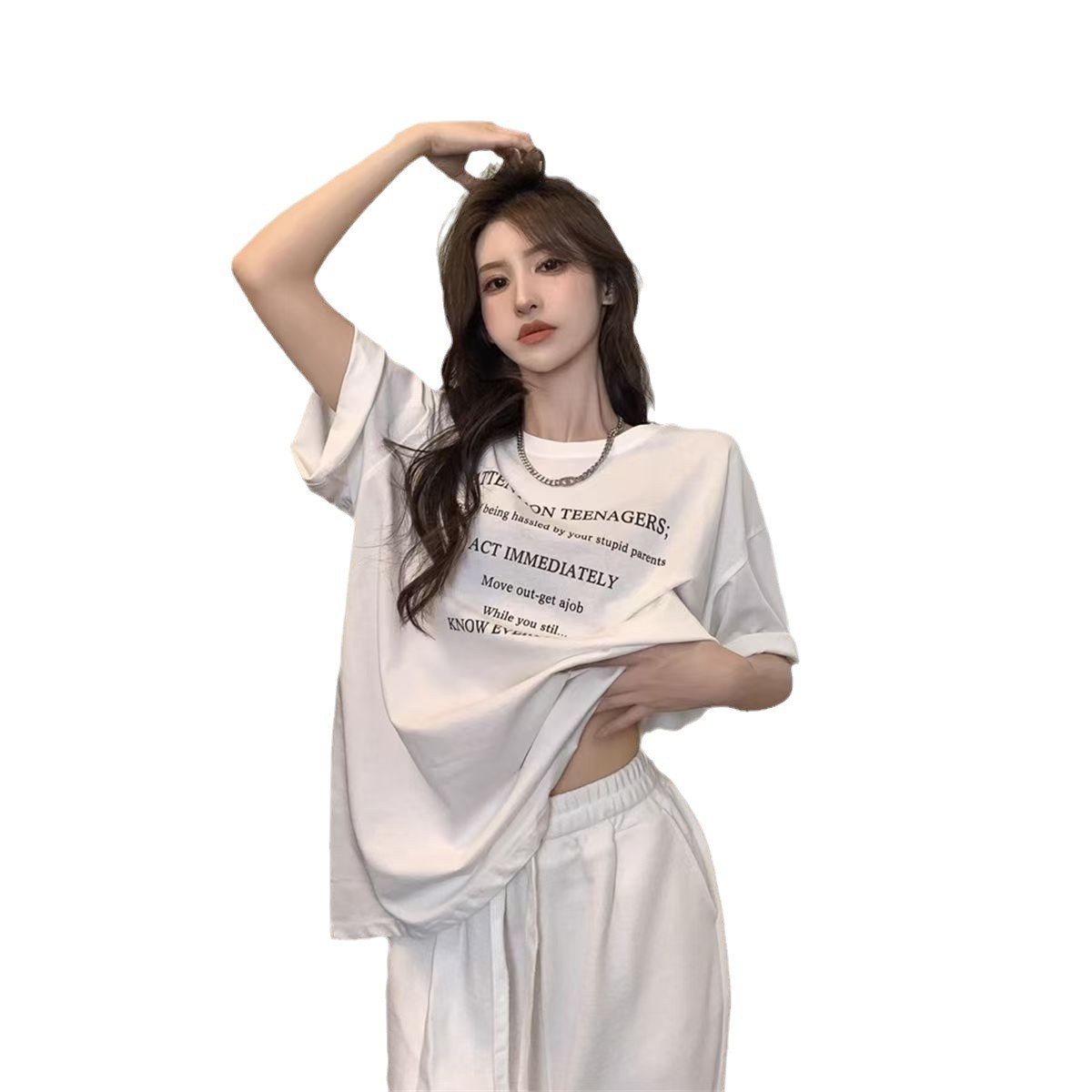 Главная страница > Летняя белая футболка женская футболка с короткими рукавами в Гонконге с принтом букв в стиле ленивый ветер футболка свободная повседневная дикая холодная ледяная шелка t