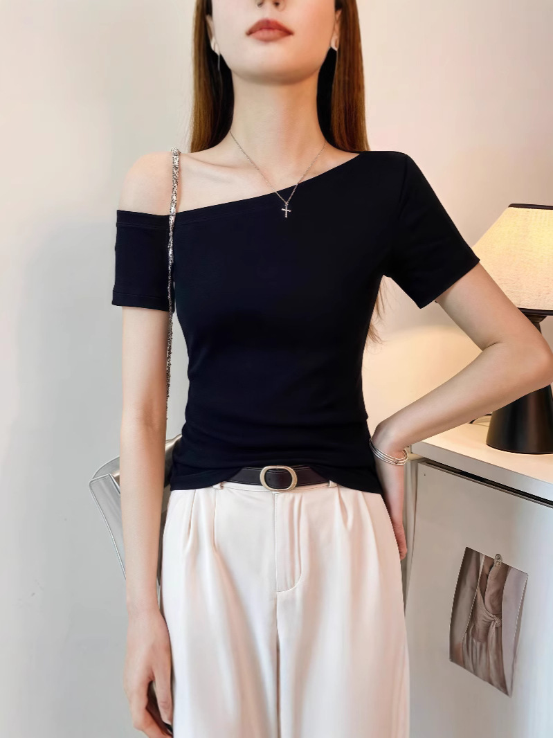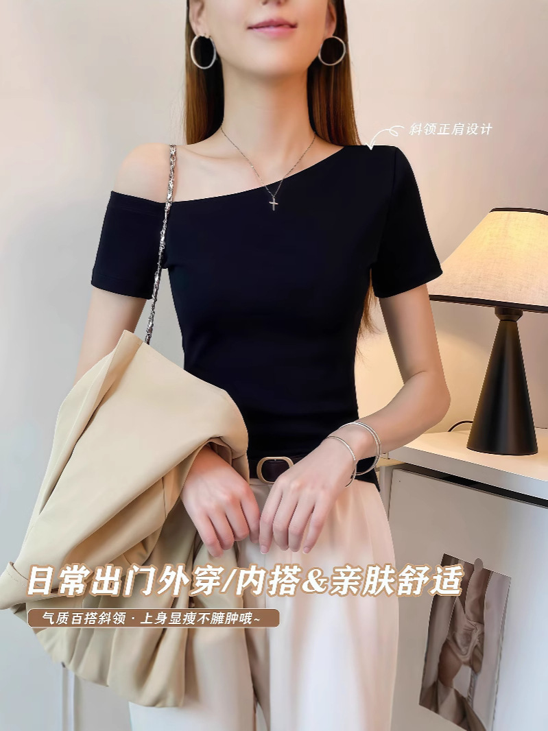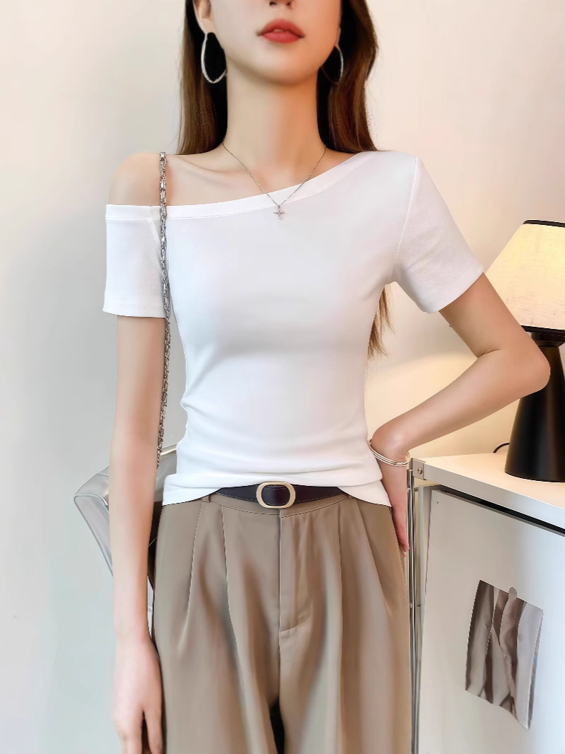 Главная страница > 2025 новый хлопчатобумажный винт косая футболка женская короткая рубашка с короткими рукавами летом