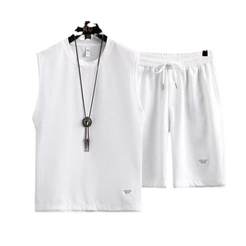 Главная страница > Летние мужские свободные с короткими рукавами вафли повседневные жилеты с короткими рукавами поддельные два комплекта спортивные шорты набор прилив