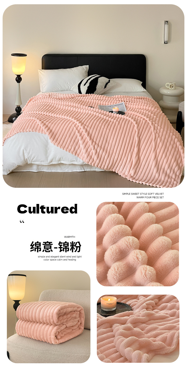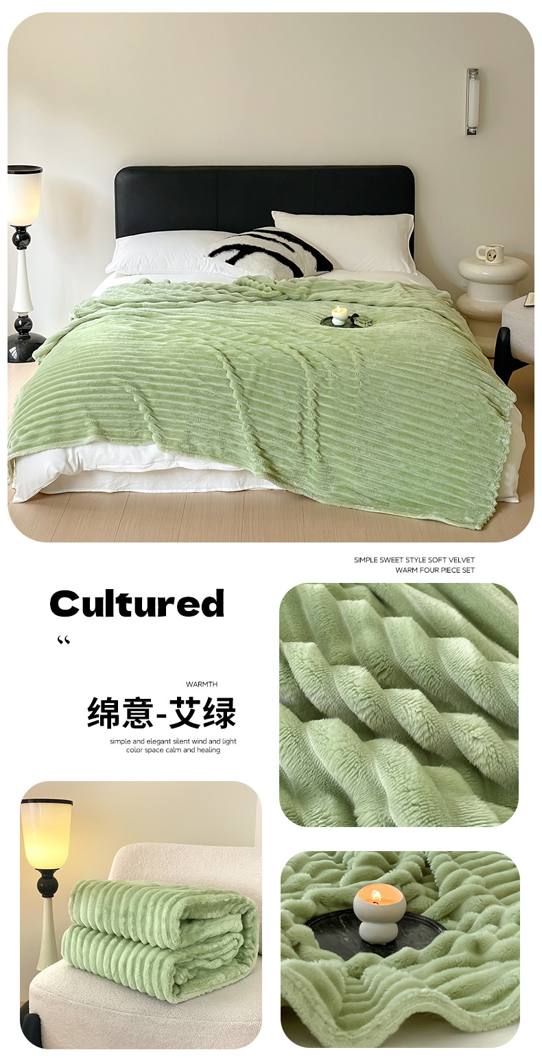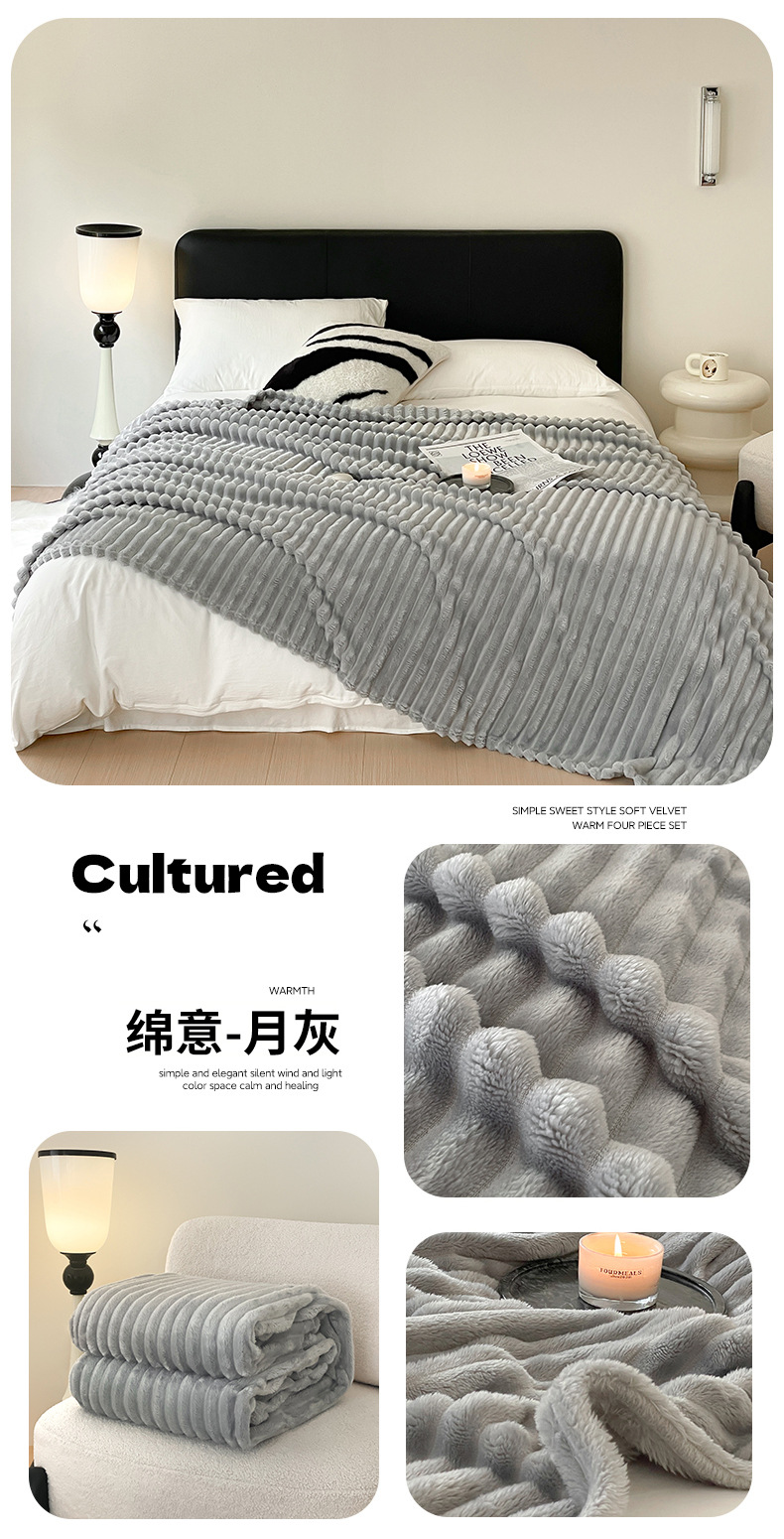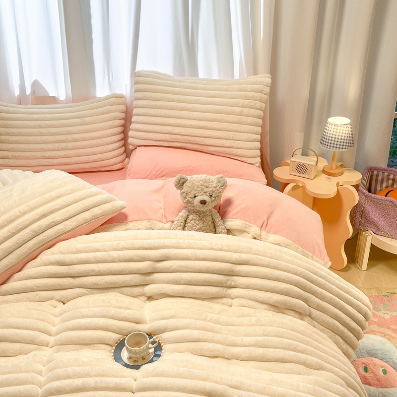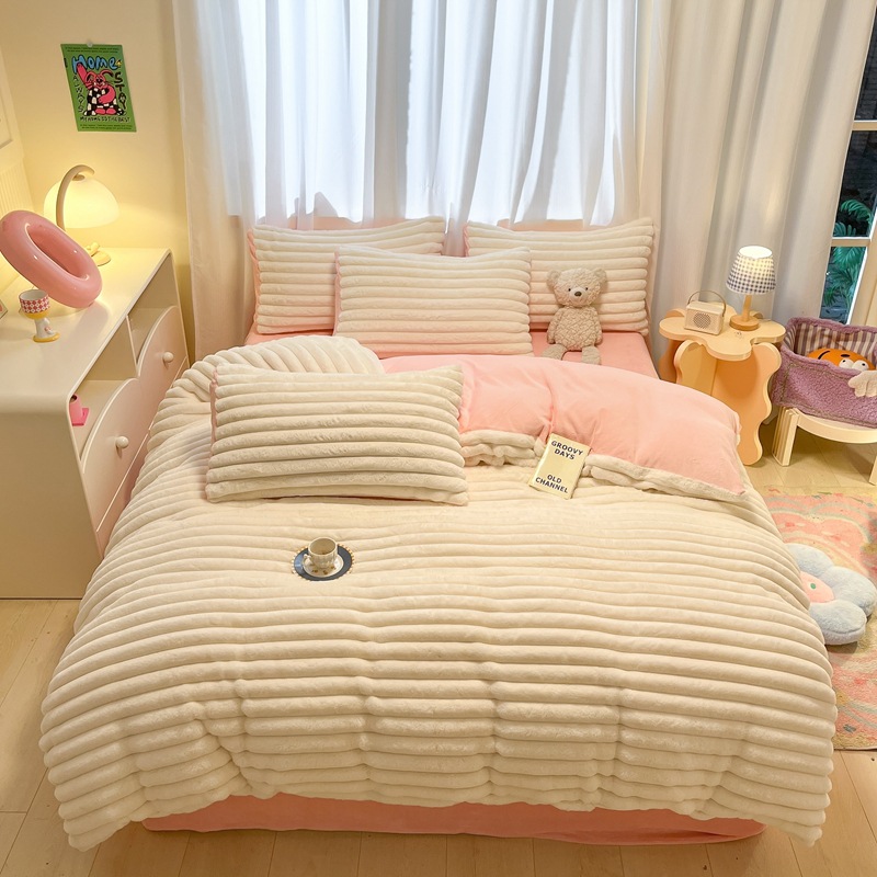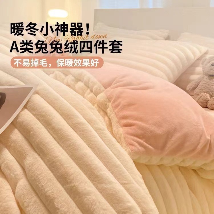 Главная страница > Высококачественный кролик-бархат набор из четырех частей молочного бархата толстый двухсторонний коралловый бархат осенние зимние простыни одеяло