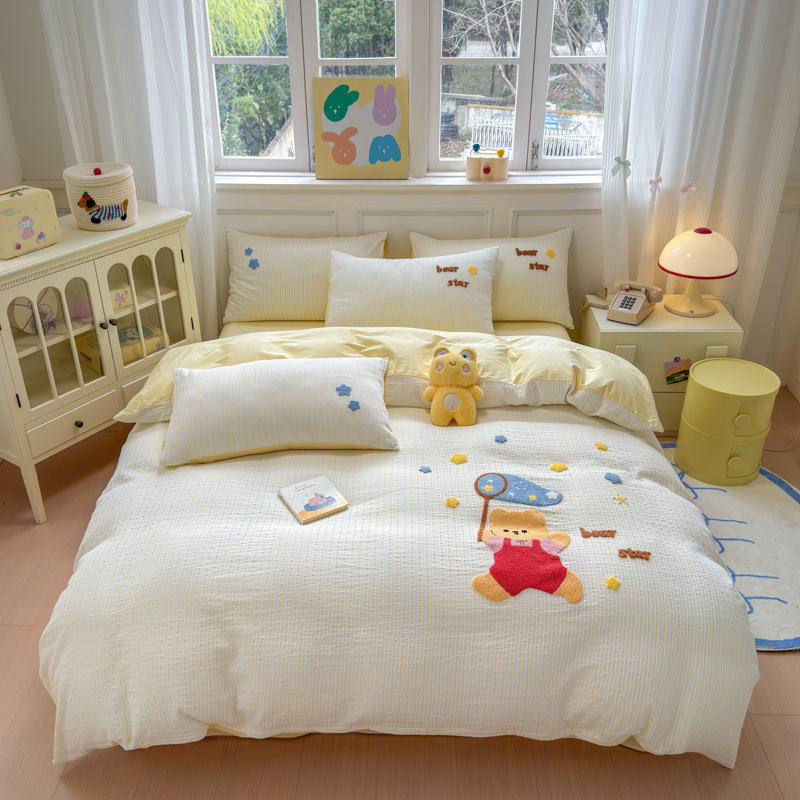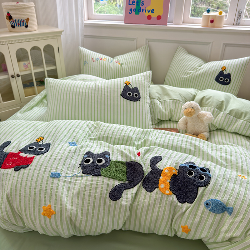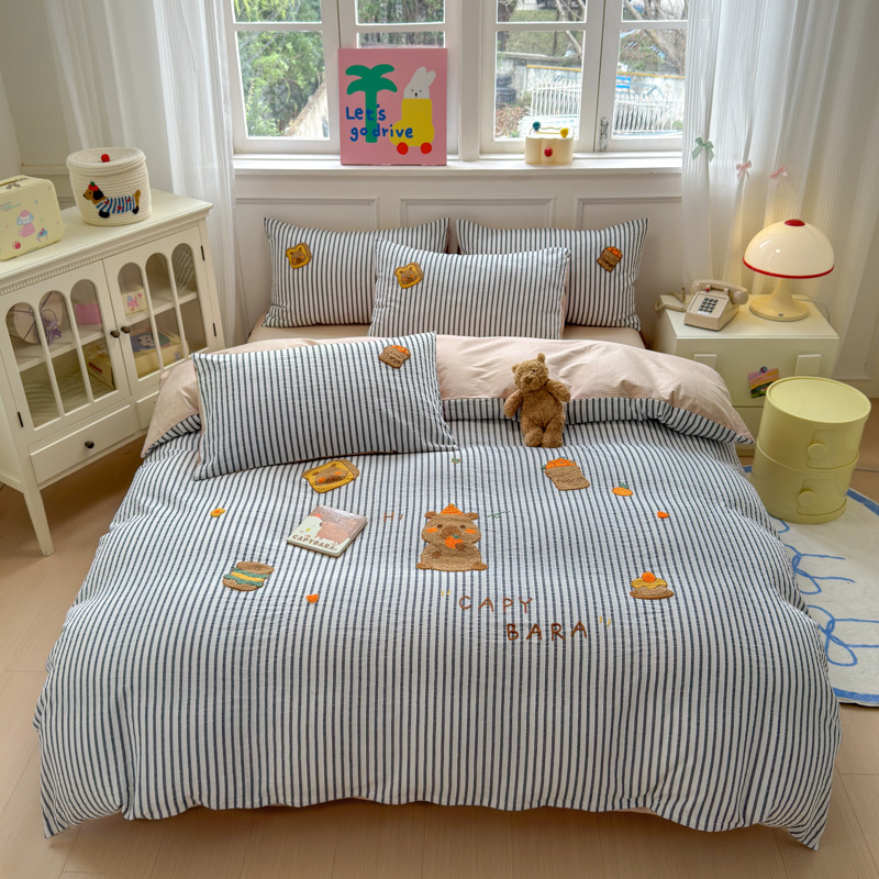 Главная страница > Хлопковое полотенце класса А в полоску из стираного хлопка, жаккардовое полотенце с вышивкой, комплект из четырех предметов, пододеяльник из чистого хлопка, комплект из трех предметов, 4