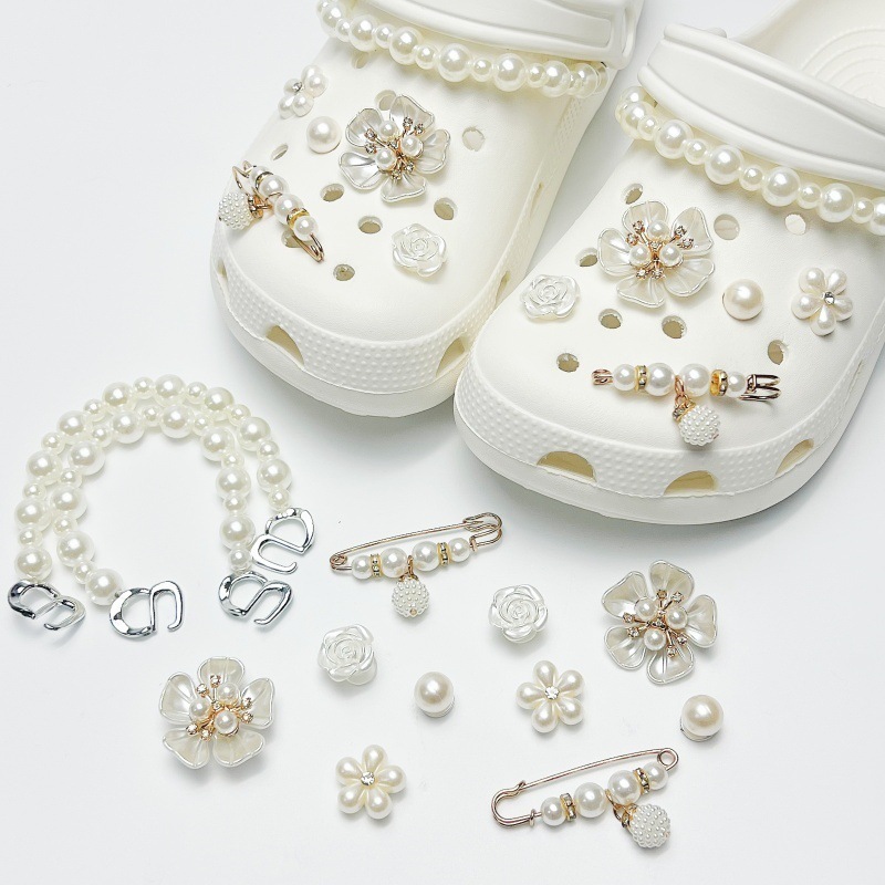 CJ-046 Набор из 18 предметов «Алмазный жемчужный цветок» (с кнопками для непосредственного использования)