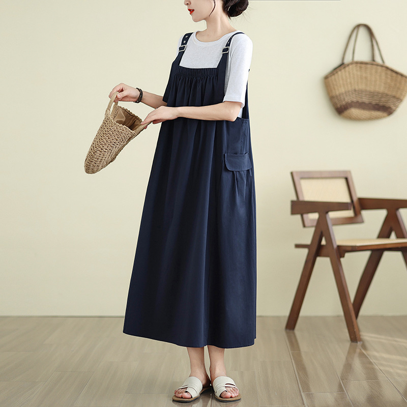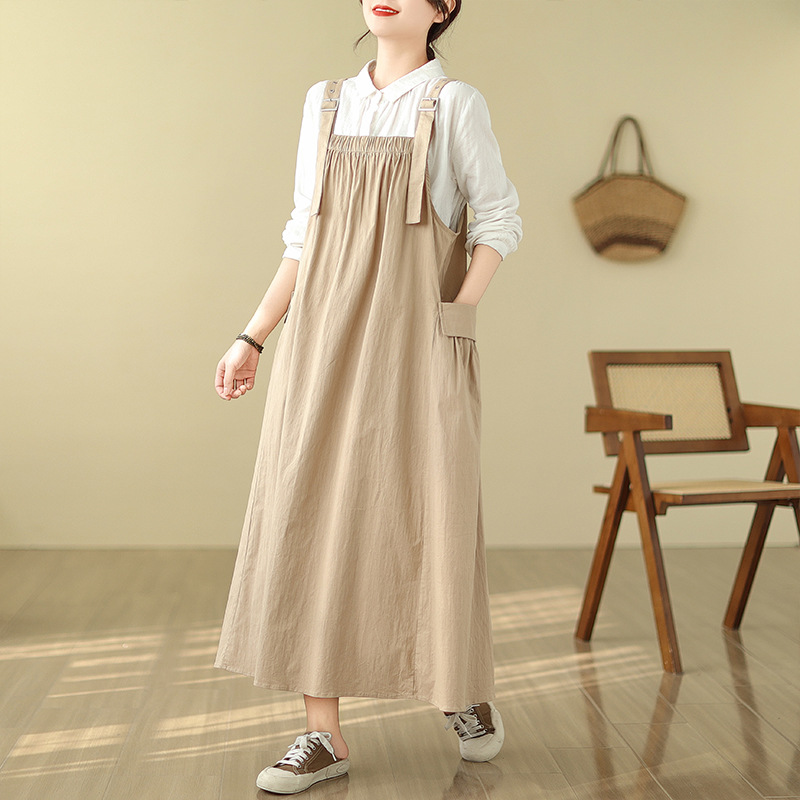 2025 летняя пустыня карточный цвет юбка без рукавов женский новый внешний вид свободного подтяжки платье