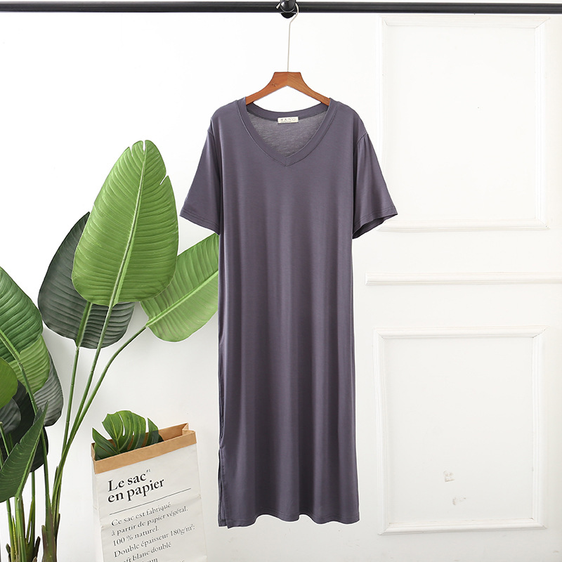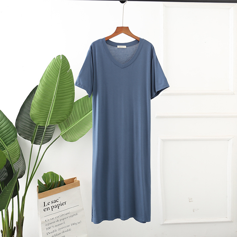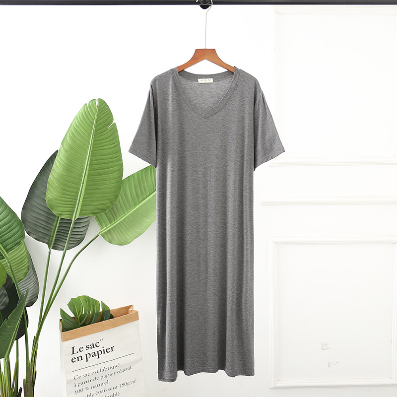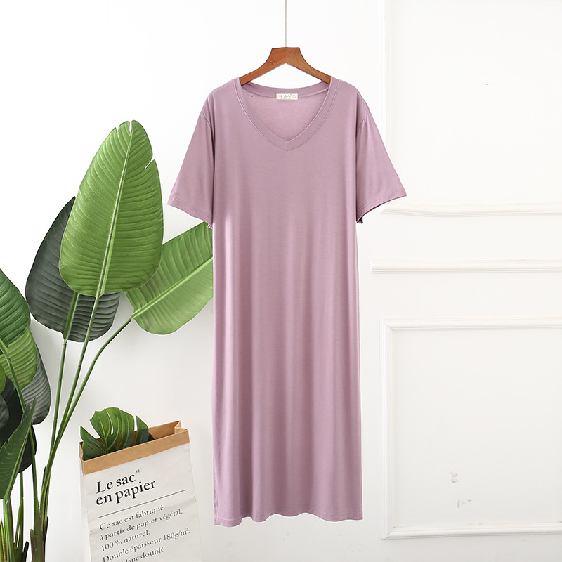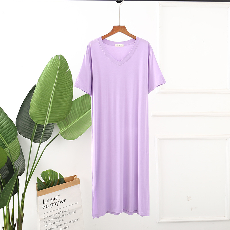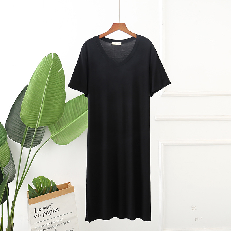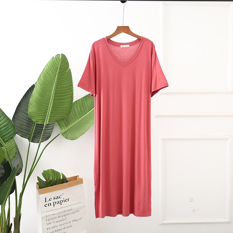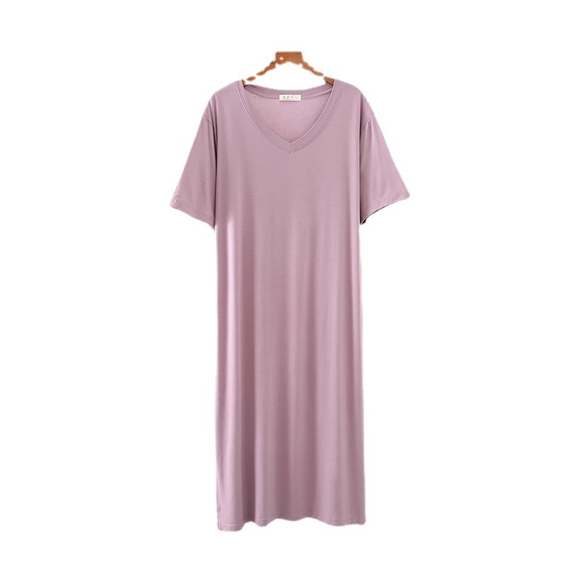 Главная страница > Корейская версия модального V-образного воротника 200 Jins пухлые девушки с свободными рукавами платье больших размеров ночная рубашка