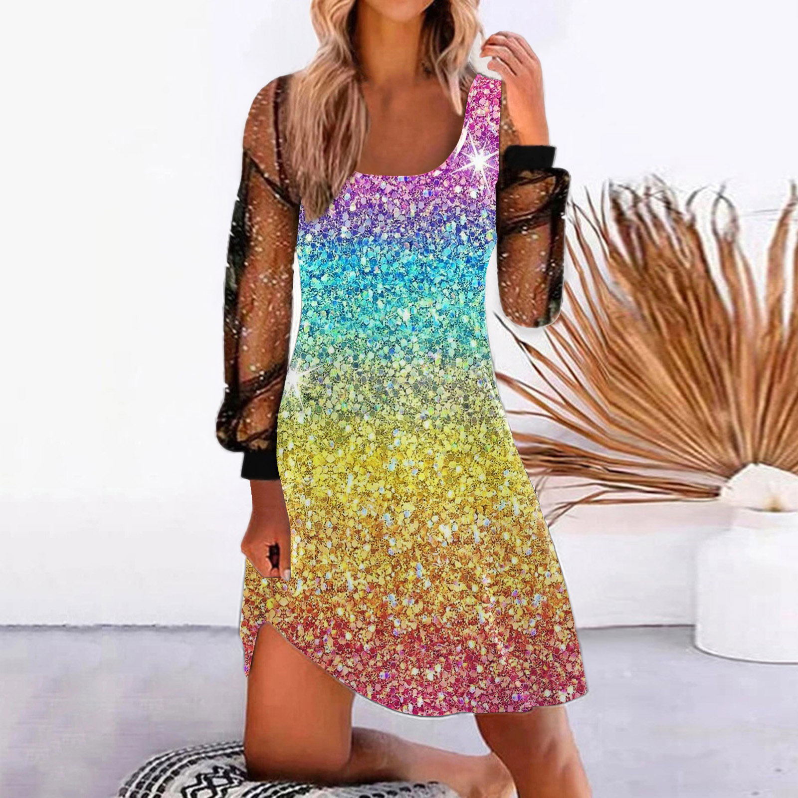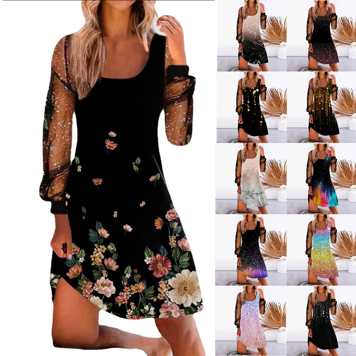 Главная страница > 2023 Внешняя торговля женская одежда Amazon желает независимая станция новое позиционирование печать сшивание Сетка Пряжа женское платье