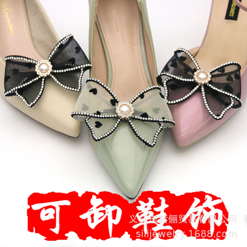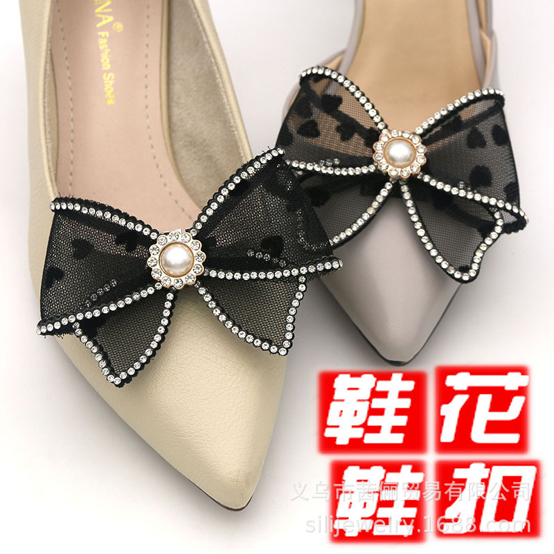 Аксессуары для туфель на высоком каблуке для трансграничной торговли, съемные пряжки для обуви, сетчатые банты для украшения обуви, декоративные аксессуары, клипсы для свадебных туфель с цветочным декором на передней части.