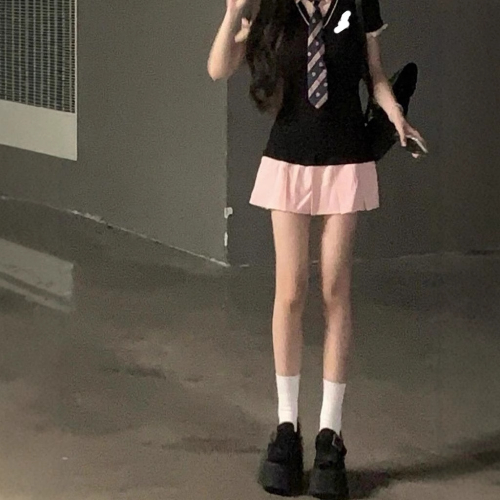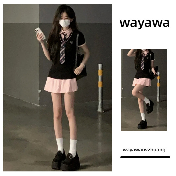 Главная страница > Летнее платье-поло для студенток 2025 года, модное, обтягивающее, двухслойное, с короткой юбкой и завышенной талией.