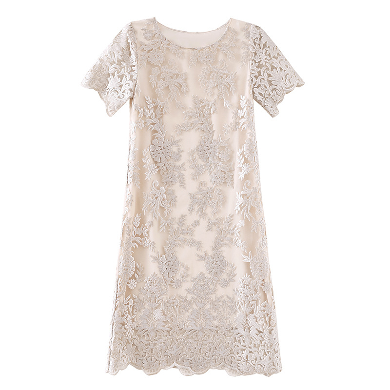 Главная страница > 2025 новый летний стиль, высококачественное платье цвета шампань с вышивкой, платье с круглым вырезом в западном стиле, классический стиль