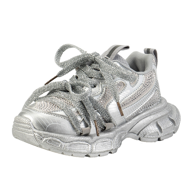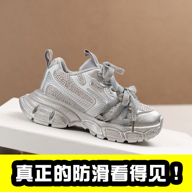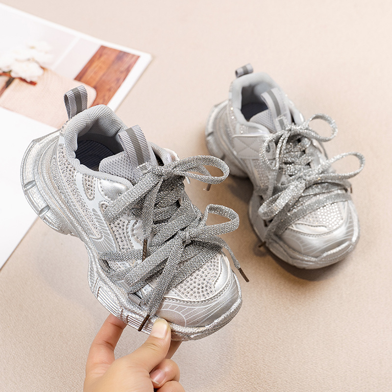 2024 осенняя новая детская обувь детская звездная звезда страз папочка обувь для девочек серебряные кроссовки для мальчиков