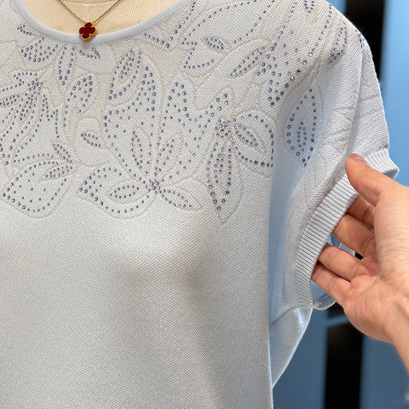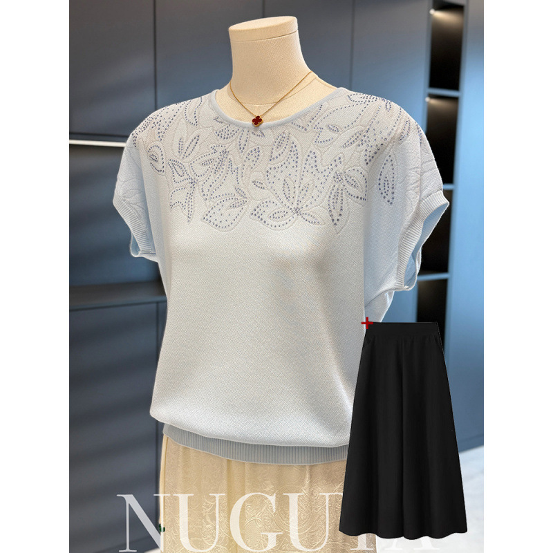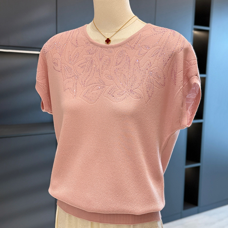 Главная страница > Модный и стильный женский трикотаж для мам с короткими рукавами, новые летние топы 2025 года, элегантные футболки для среднего и пожилого возраста, уменьшающие возраст.