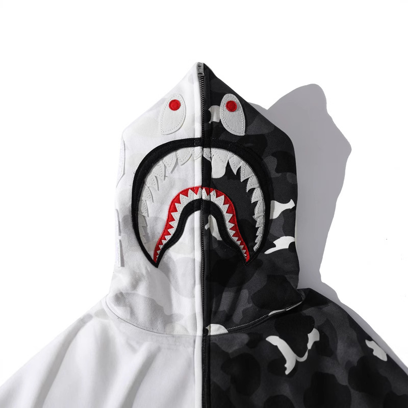 Главная страница > Трансграничная оптовая внешняя торговля, черно-белая светящаяся толстовка с головой акулы, мужская осенне-зимняя бархатная куртка на молнии для пары