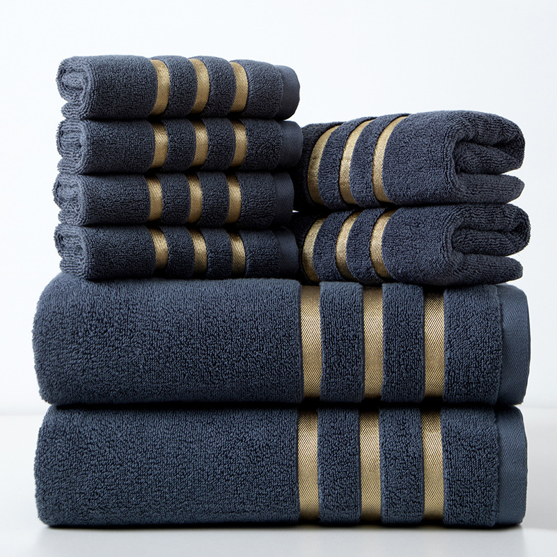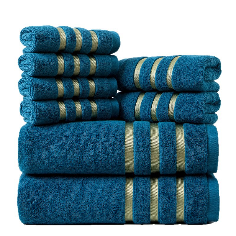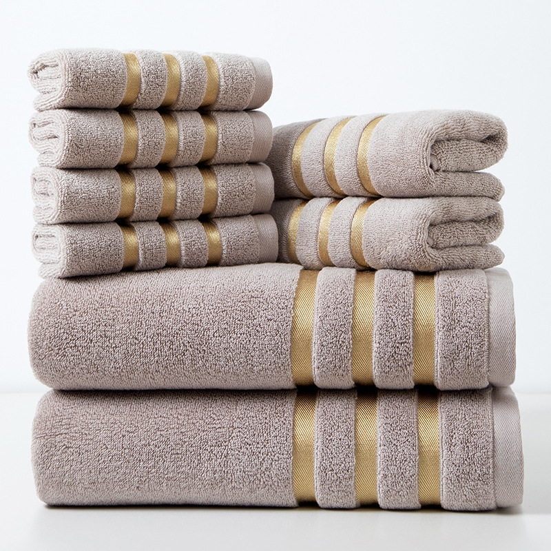 Главная страница > Набор из 8 предметов из чистого хлопка с золотой окантовкой: квадратные полотенца, банные полотенца, полотенца для лица и ванны, оптовый набор для дома.
