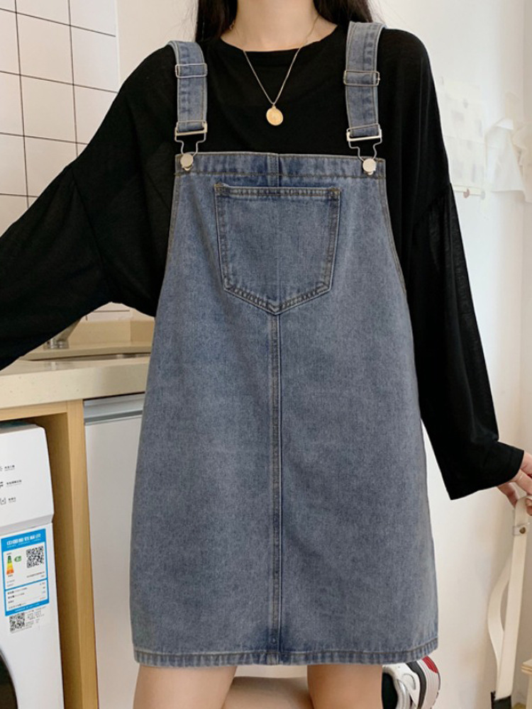 Главная страница > Осеннее свободное джинсовое платье на бретельках в Корейском стиле в стиле ретро с высокой талией, женское универсальное дизайнерское облегающее модное короткое платье