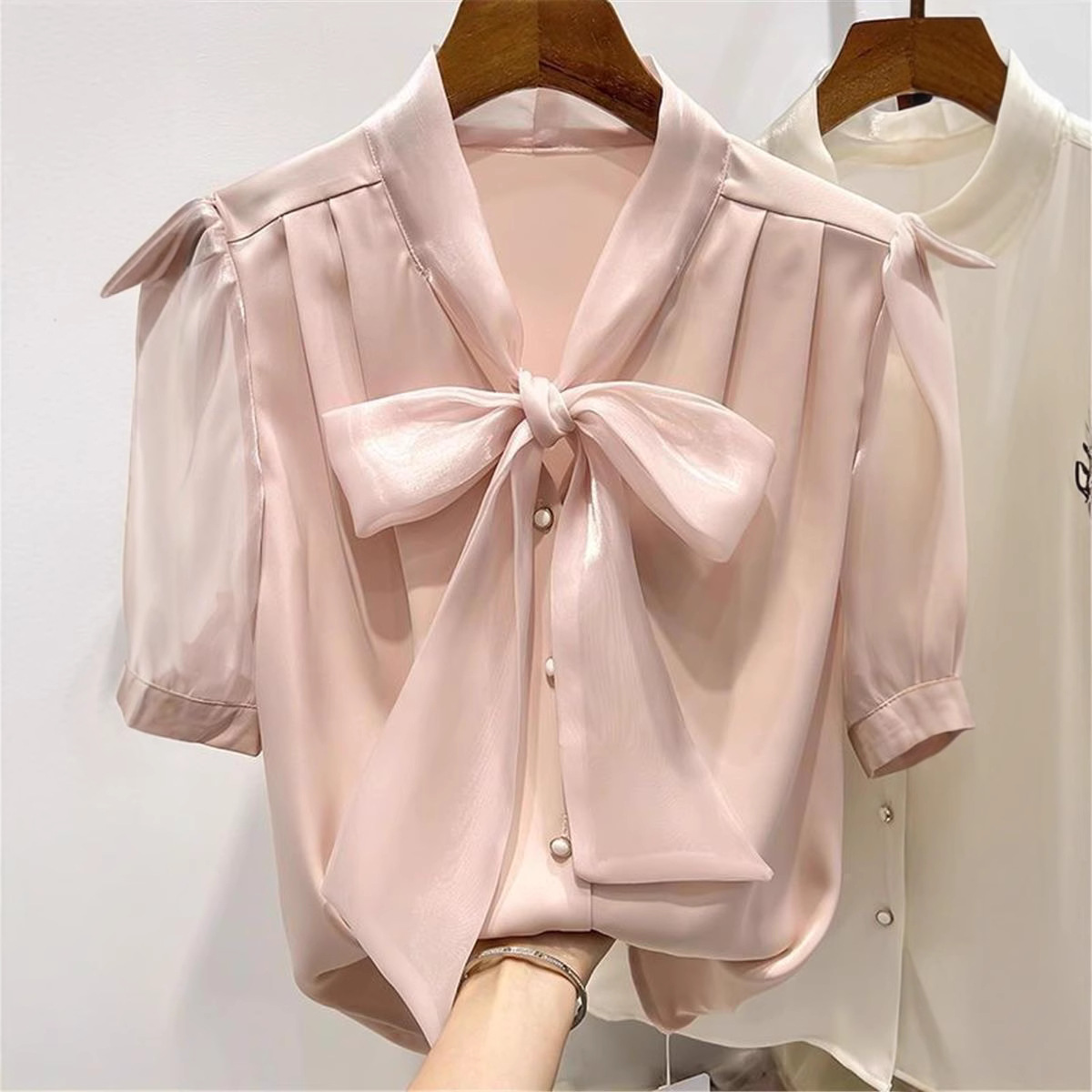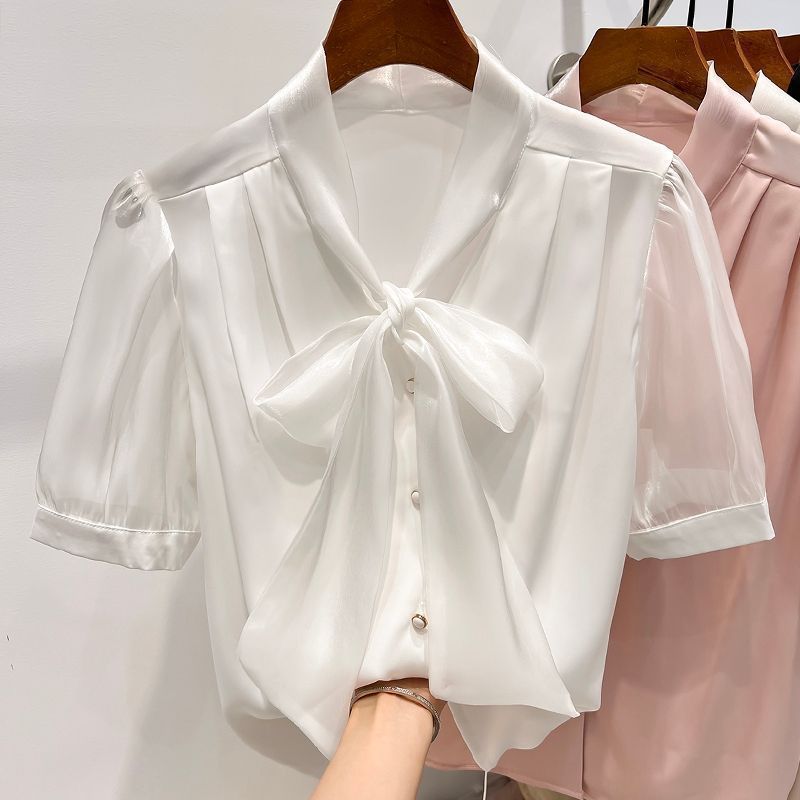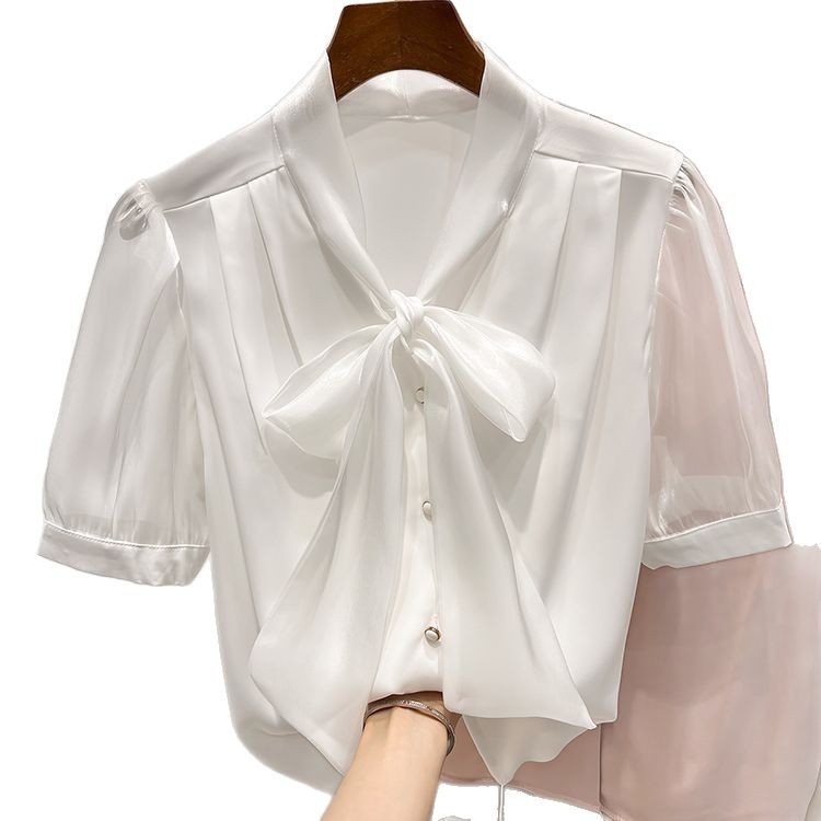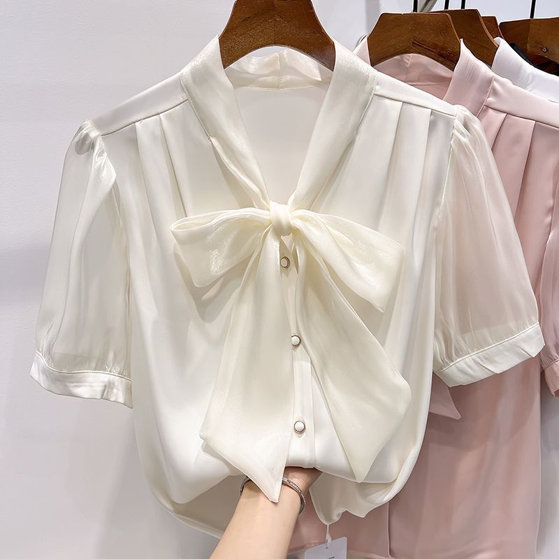 Главная страница > Модная женская рубашка с короткими рукавами и бантом на шнуровке в европейском стиле, новый летний дизайн с уникальной блузкой с V-образным вырезом.