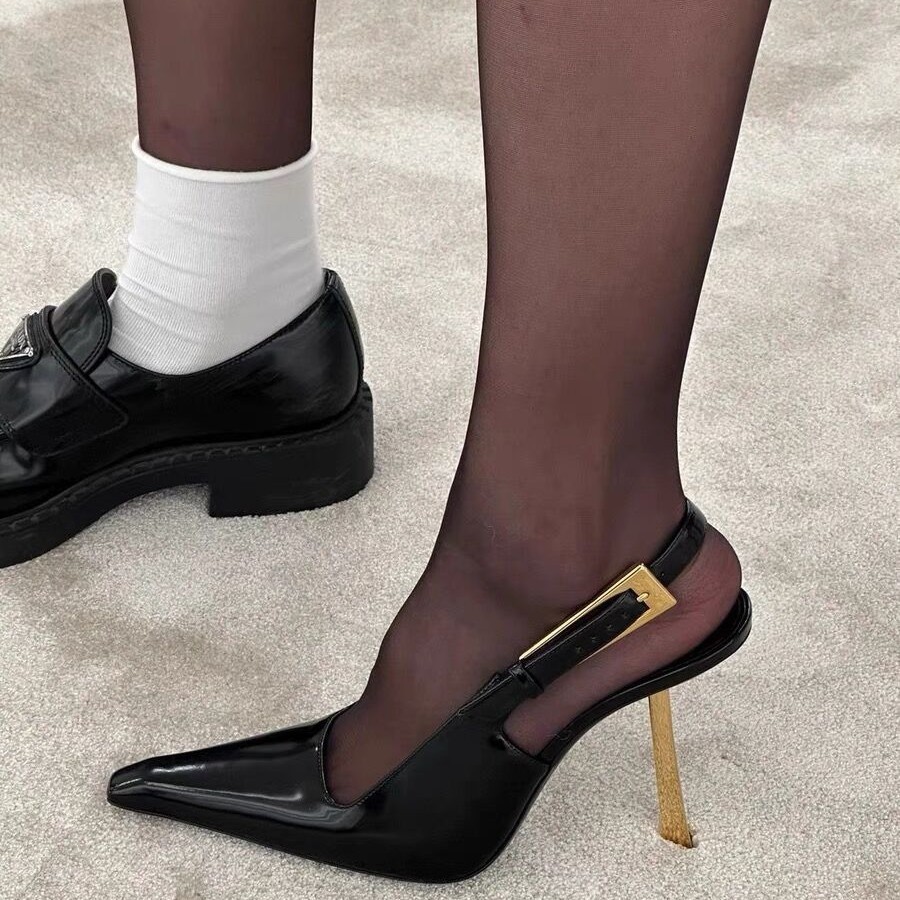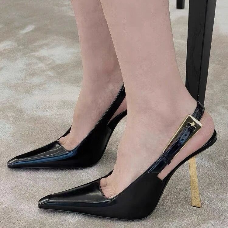 Главная страница > Женские босоножки-стилето из черной лакированной кожи, модель 2025 года, с открытой пяткой и вырезом на задней части, сексуальный дизайн, осенняя коллекция.