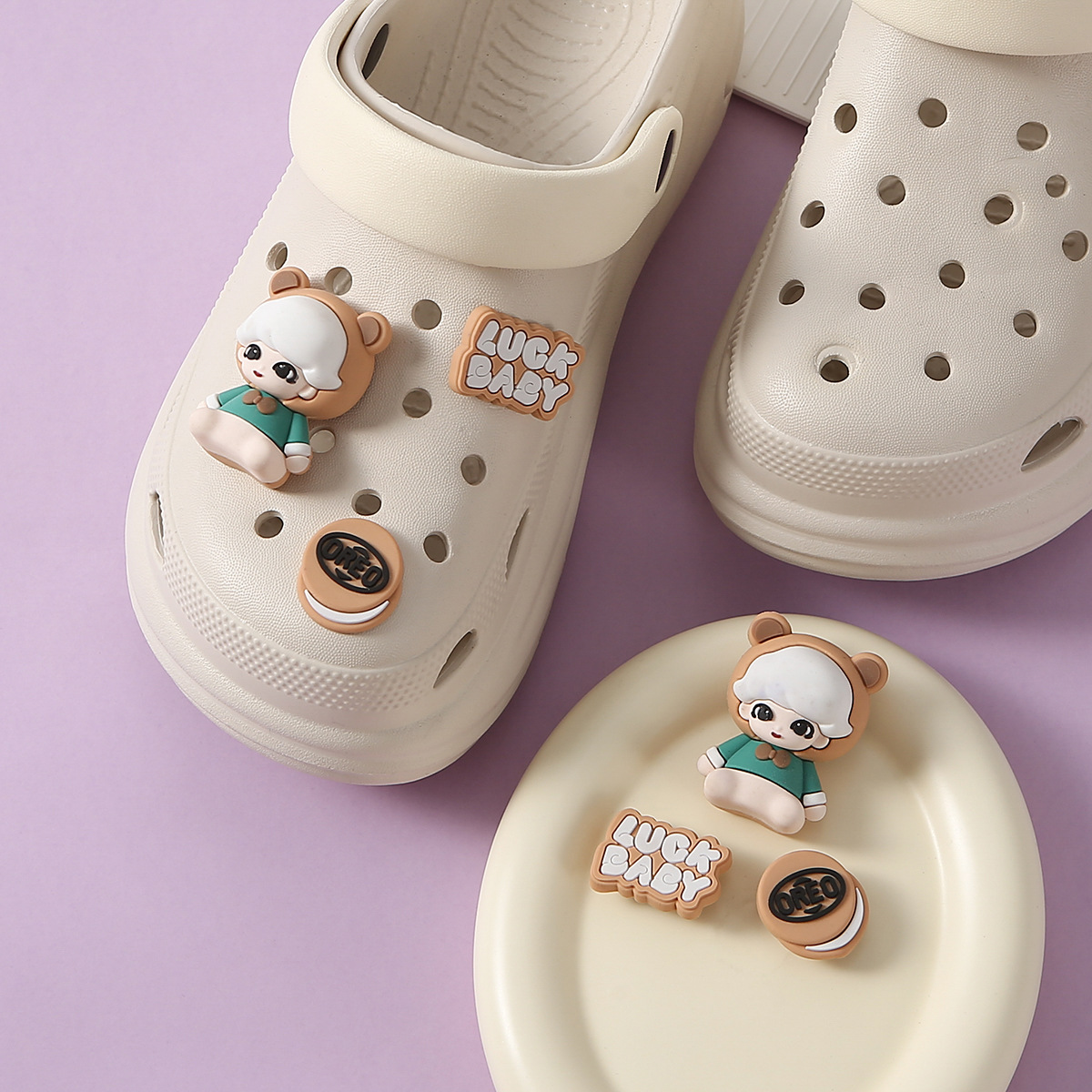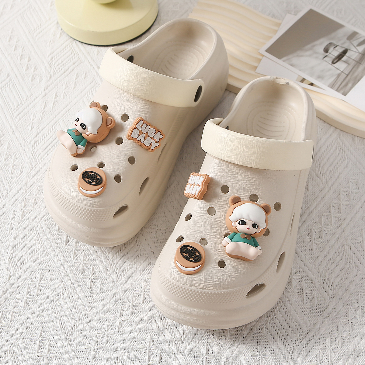 Зеленый медведь, съемные сабо «сделай сам», высококачественная обувь, аксессуары Xiaohongshu, пряжка для обуви в стиле ins