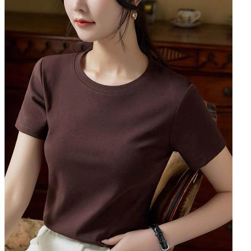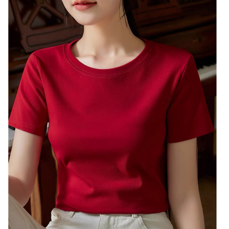 Главная страница > Бордовая футболка женская с короткими рукавами, весна-лето 2025, новая тонкая футболка на правое плечо, тонкий топ с круглым вырезом
