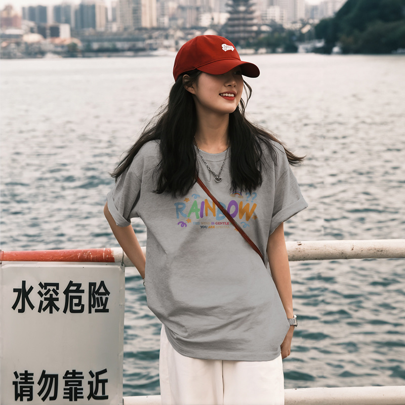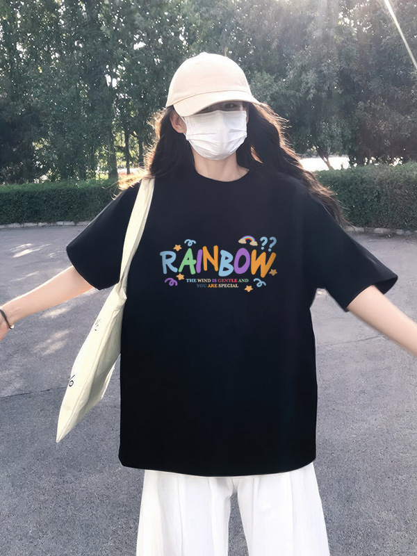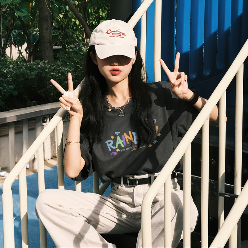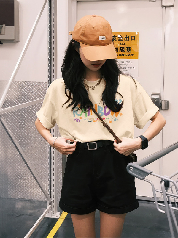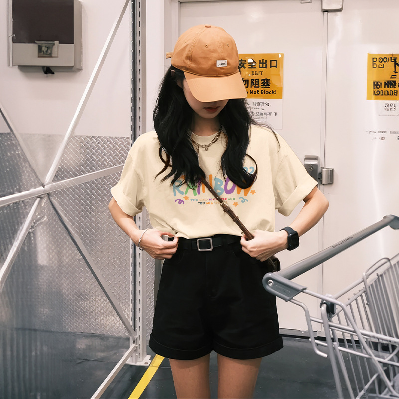 Главная страница > Женская летняя футболка из чистого хлопка 260 г, черная, короткий рукав, свободного кроя, уникальный шик, модный тренд