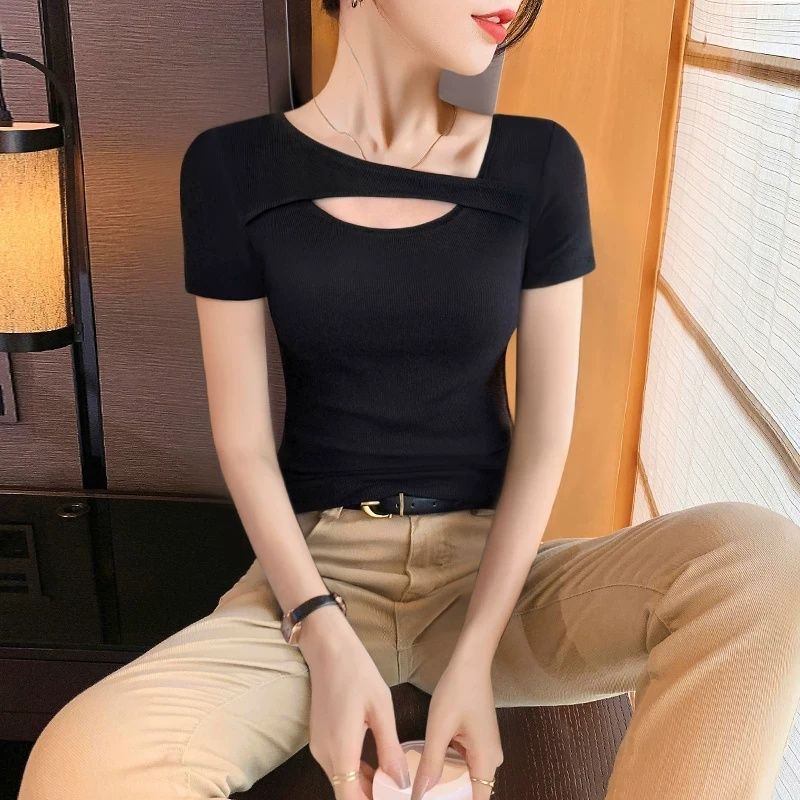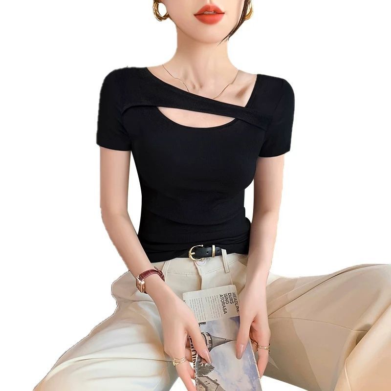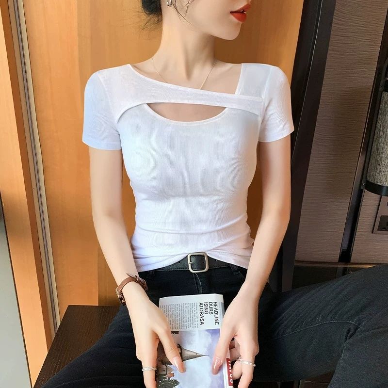 Главная страница > Женская футболка в корейском стиле с короткими рукавами, весна и лето 2025, новый дизайн, сексуальная облегающая футболка Pure Desire, женская летняя нижняя рубашка, топ