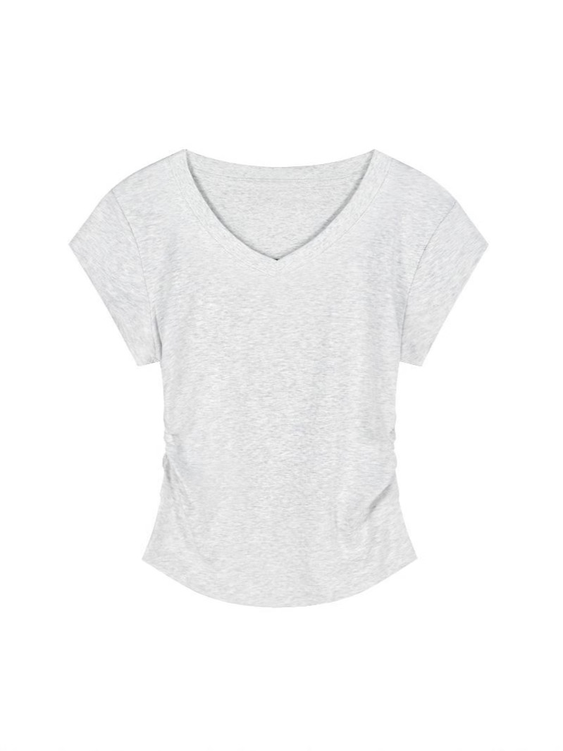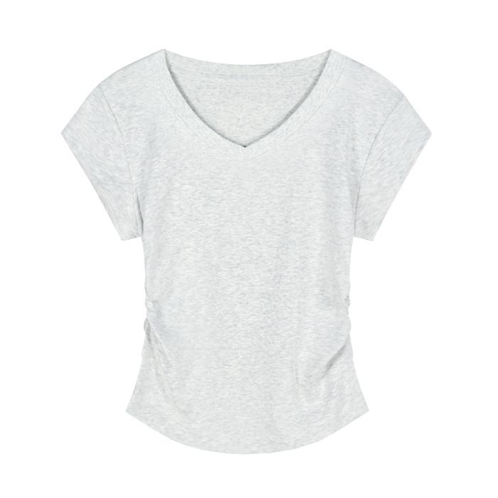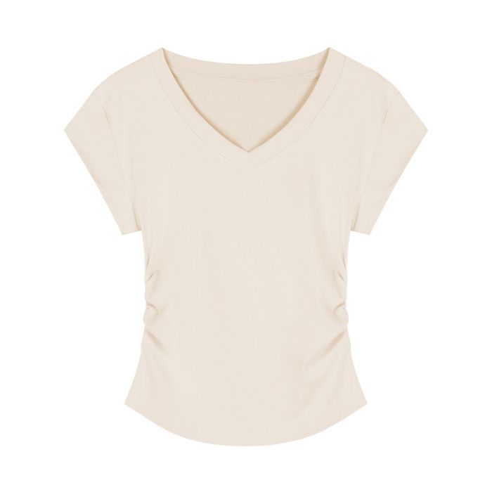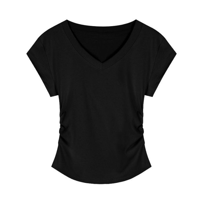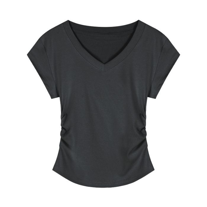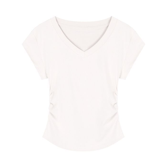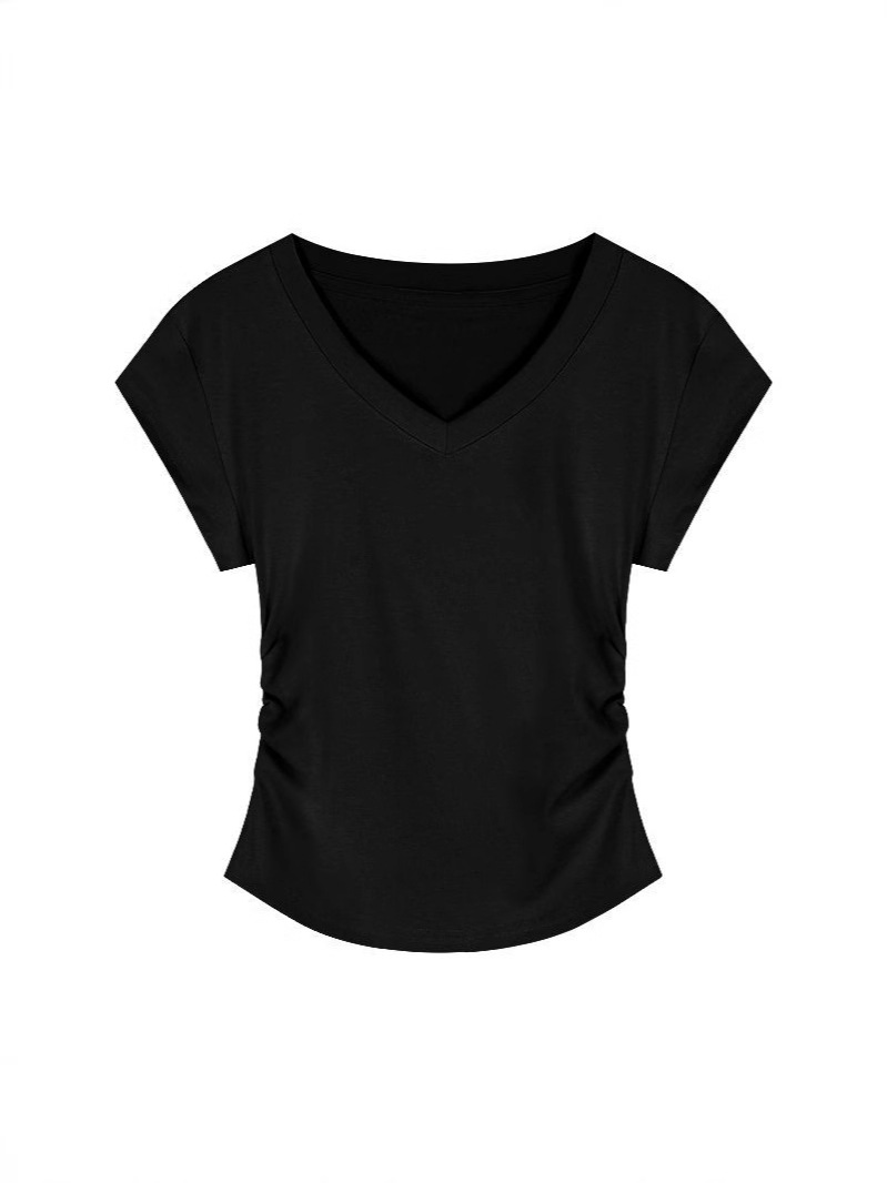 Главная страница > Горячая девушка с тонким плечом и короткая футболка женская короткая рубашка с короткими рукавами летом новый американский ретро нерегулярный тонкая рубашка с V-образным вырезом