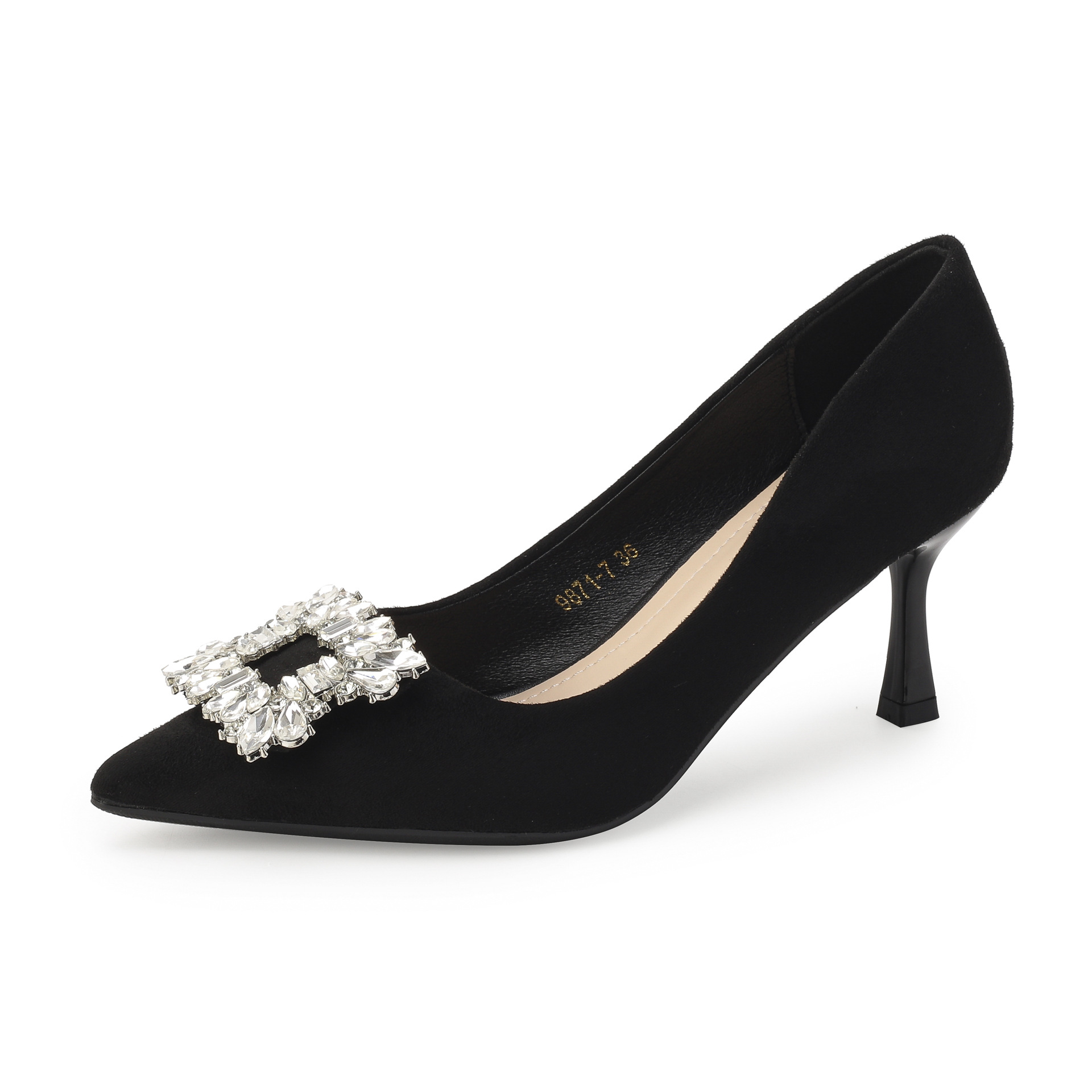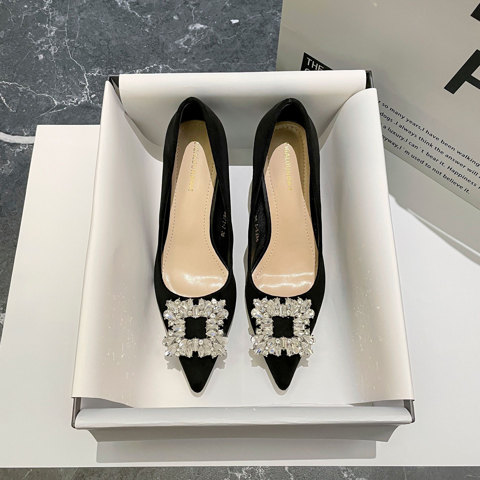 Главная страница > Женские туфли 9871-718, кросс-бордер, специальная модель, заостренный носок, стразы, квадратная пряжка, балетки, высокие каблуки, универсальная женская обувь
