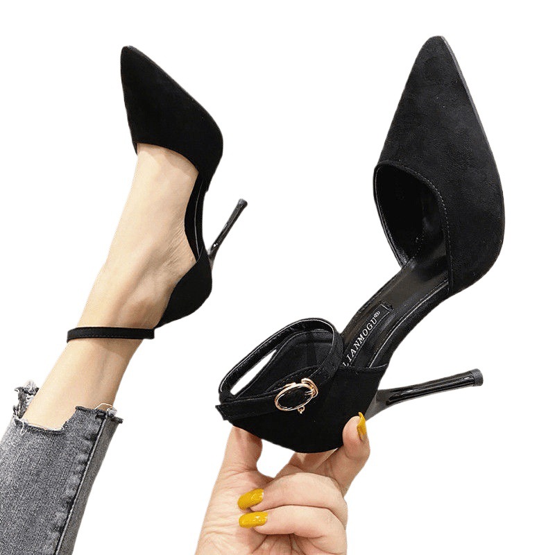 Главная страница > Весенние туфли на высоком каблуке для женщин 2025, новые универсальные шпильки, профессиональные офисные туфли с острым носком, черные с ремешком и пряжкой, модные женские туфли.