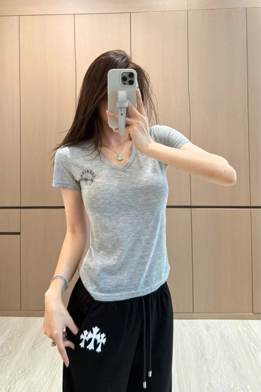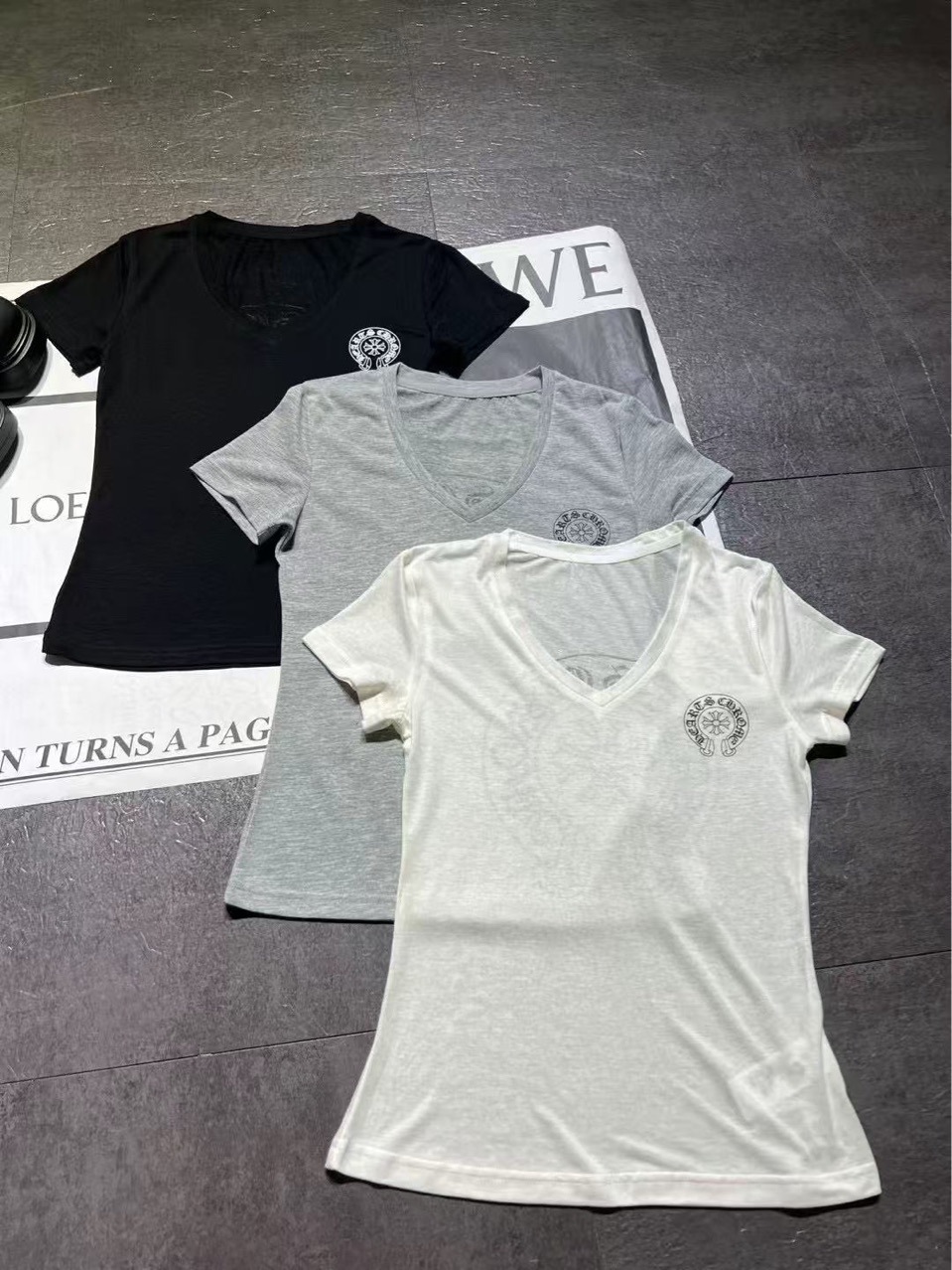 Главная страница > [Готовая правильная версия Dujia] Ch Crowe 2025, трехэлементная женская футболка с v-образным вырезом и принтом, новая женская футболка с короткими рукавами