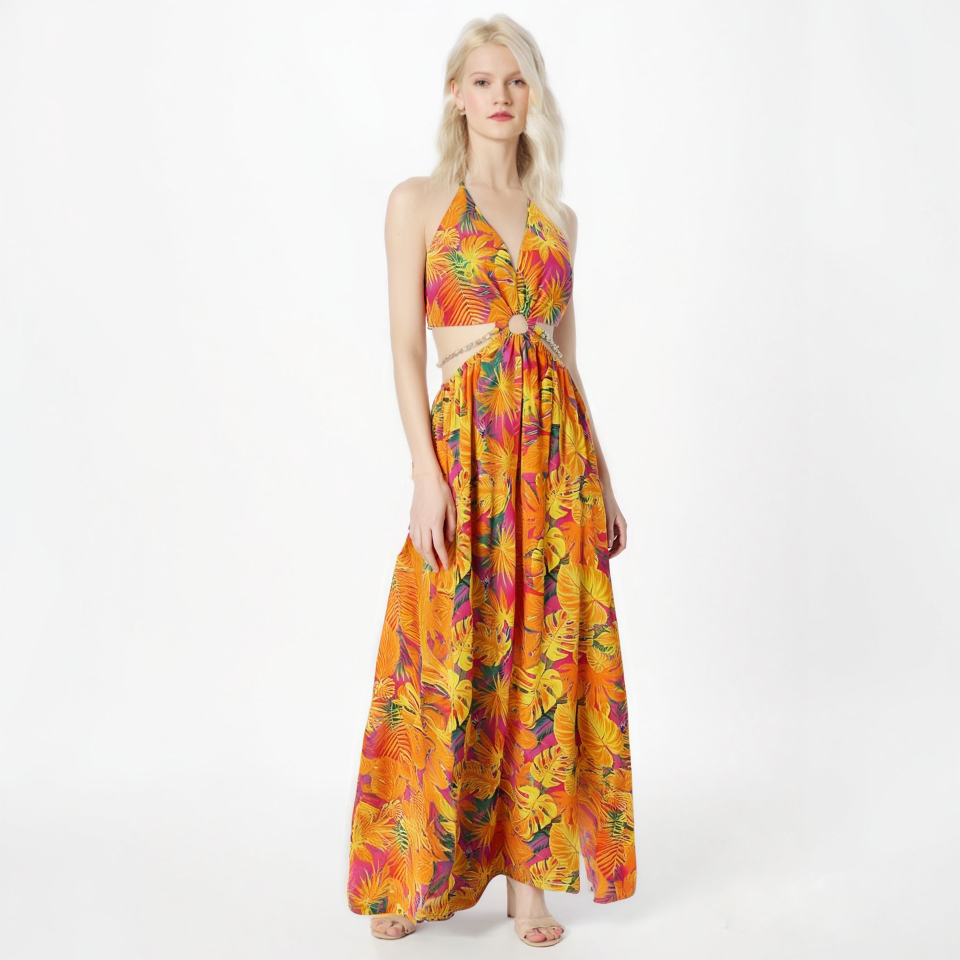 290 Европейская и американская экспортная женская юбка с принтом, платье большого размера, слегка толстая юбка средней длины на подтяжках, длинная юбка с французским принтом