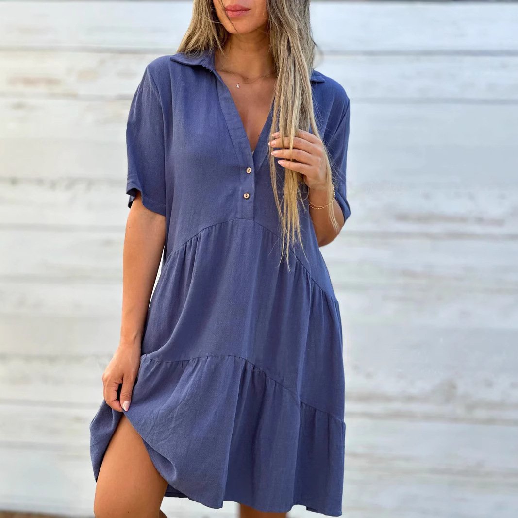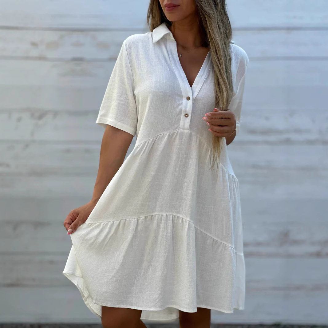 Главная страница > Трансграничная внешняя торговля, новая европейская и американская одежда, юбка Amazon, свободное однотонное повседневное платье с лацканами и короткими рукавами из хлопка и льна
