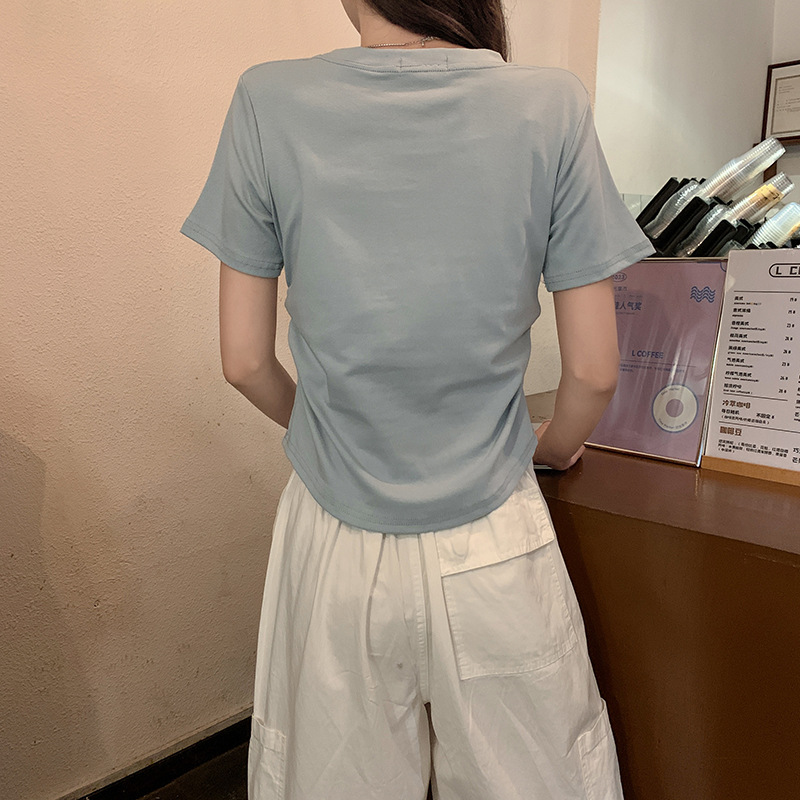 Главная страница > 2025 дизайнерская нишевая футболка женская с коротким рукавом, правое плечо, утягивающий эффект, модная новинка 2025, летний топ с короткой талией, трендовый