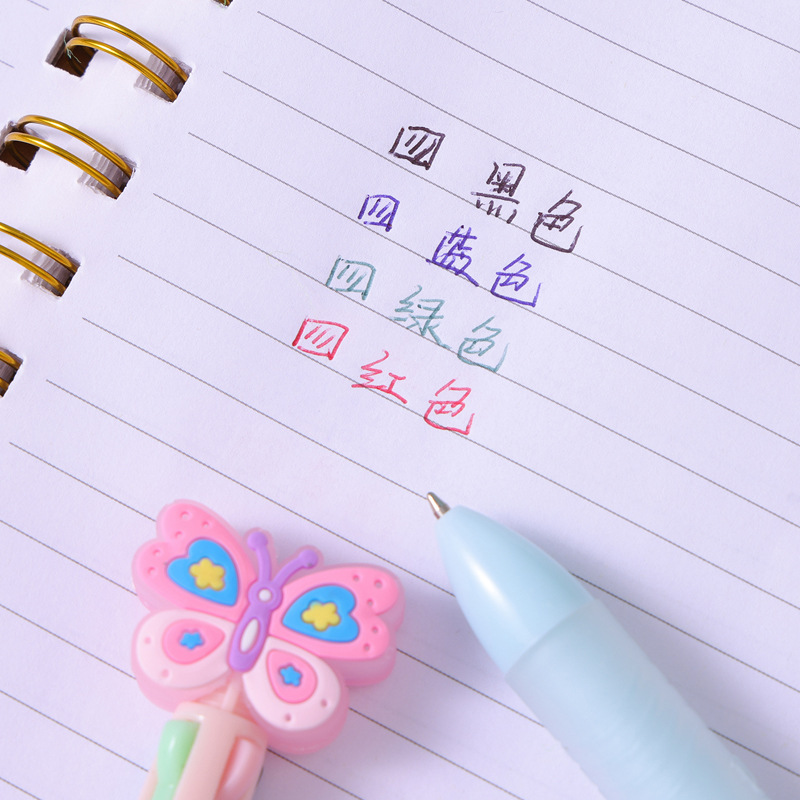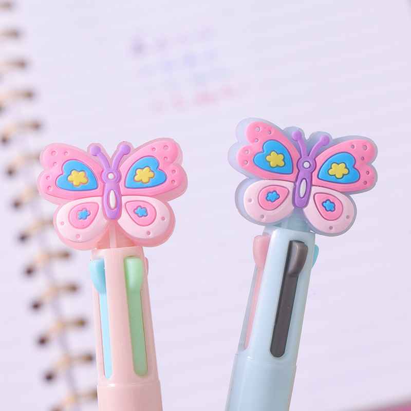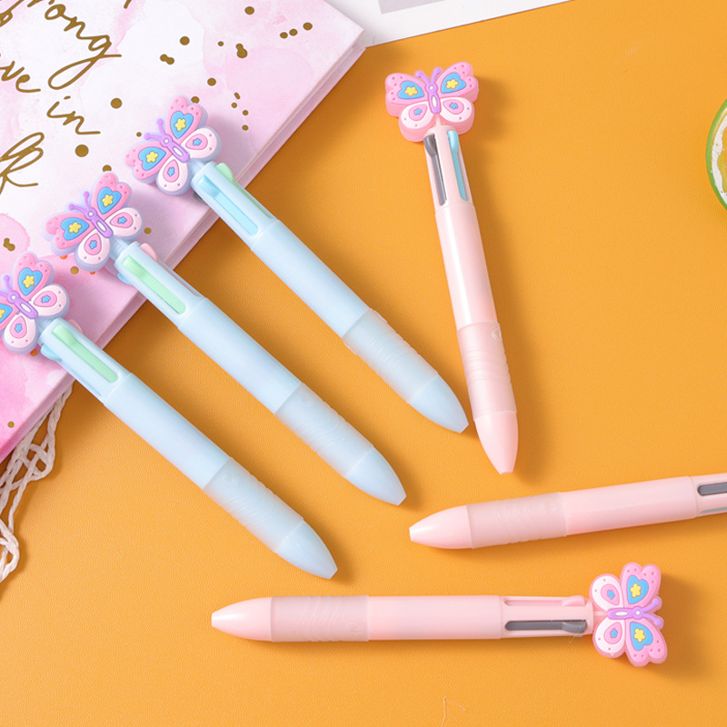 Главная страница > Четырехцветная шариковая ручка с бабочкой с мультяшной головкой цветной маркер ручка для студентов милые креативные канцелярские подарки призы