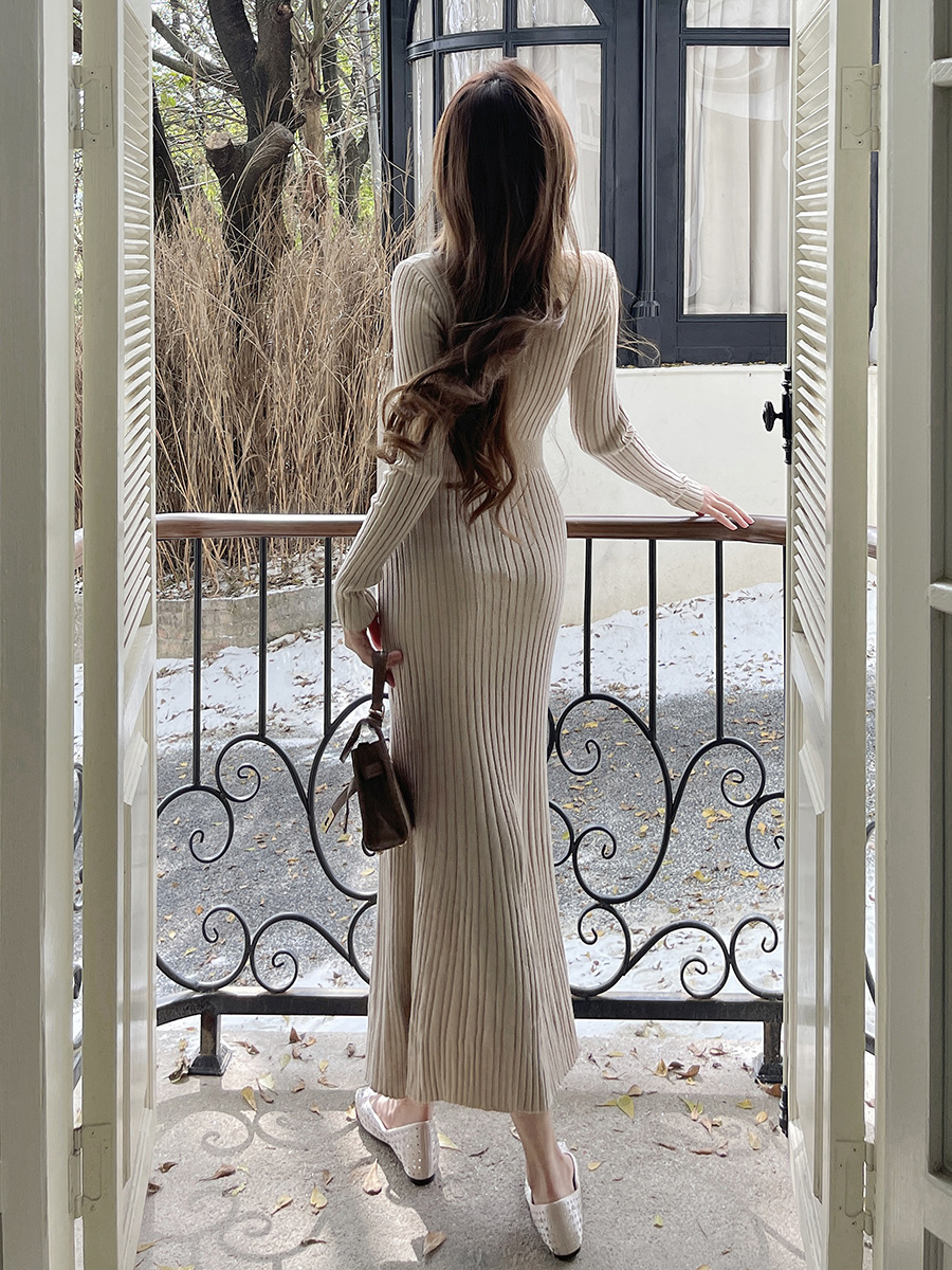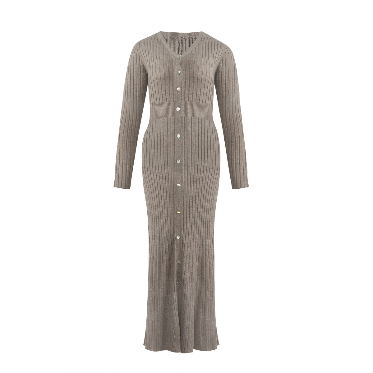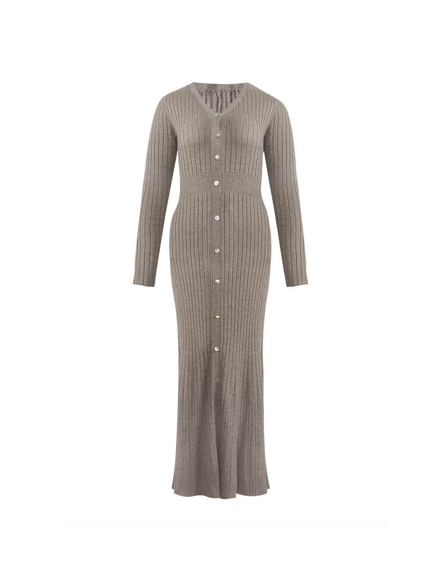 Главная страница > Вязаное облегающее платье Herman Curve с V-образным вырезом для женщин, модное длинное платье в рубчик премиум-класса для ранней осени